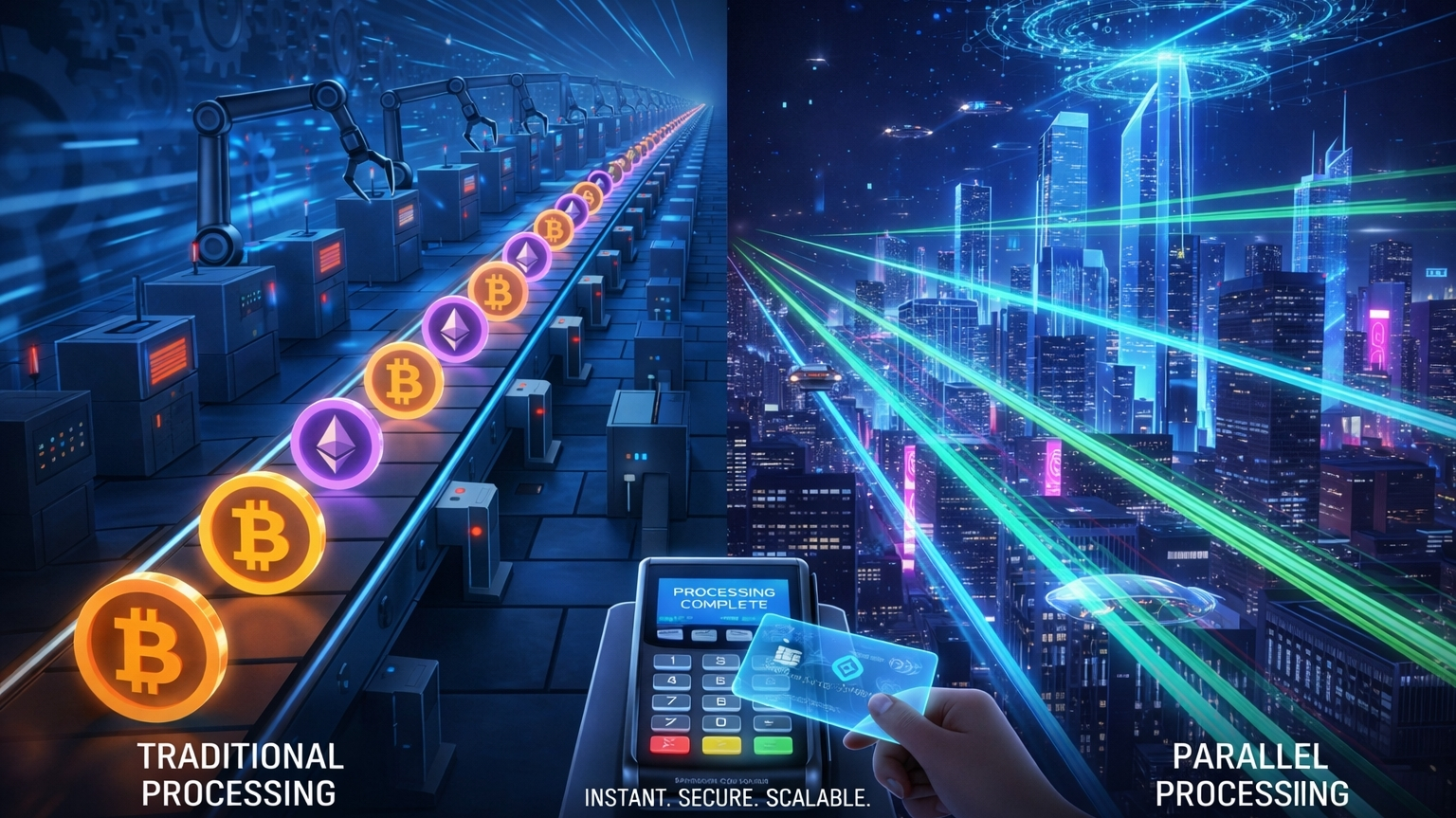 Le blockchain di prima generazione come Bitcoin ed Ethereum elaborano le transazioni una dopo l'altra. Questo è chiamato elaborazione sequenziale.