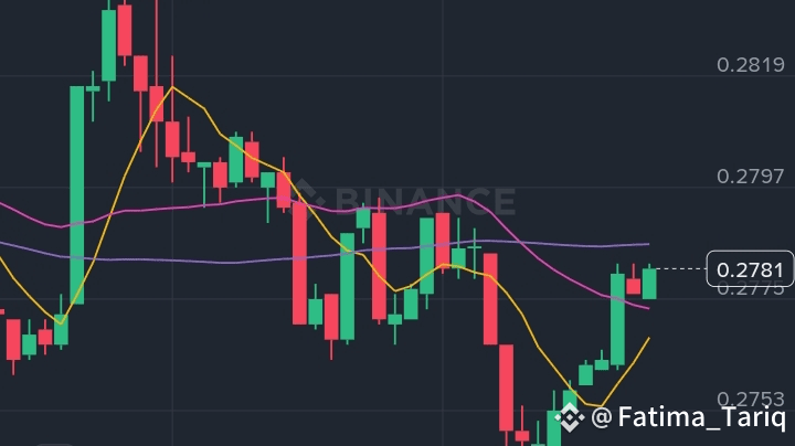 Entra long intorno a 0.272 - 0.275 USDT—quella è la tua finestra d'oro. Perché? Il grafico 1H sta formando una bandiera rialzista dopo essere rimbalzato dall'EMA a 50 periodi a ~0.272, un livello che ha mantenuto come supporto più volte questa settimana. RSI su 1H è a 45-50, scendendo a neutro da ipervenduto (ha toccato 35 nell'ultimo tuffo), suggerendo una costruzione di slancio senza surriscaldamento. L'istogramma del MACD si sta appiattendo per un potenziale incrocio rialzista, e i recenti segnali X notano consolidamento vicino a questa zona con acquirenti che si fanno avanti su volume. Entra con una leva di 5-10x sui futures (cross-margin per evitare drammi di liquidazione), allocando il 1-3% del tuo capitale. Se chiude sopra 0.276 su 1H, quella è la tua conferma—i ribassisti si stanno stancando, e i venti favorevoli del DeFi potrebbero accendere la scintilla.