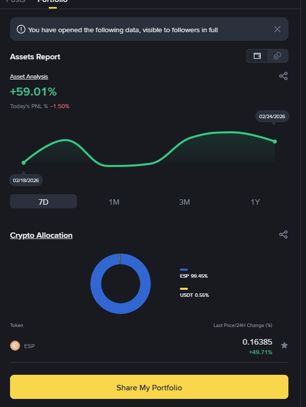 Who's also riding high-APR coins like ESP right now? What's your portfolio % change or daily drip? Share your screenshot or numbers below – let's see how we're all doing! 👇