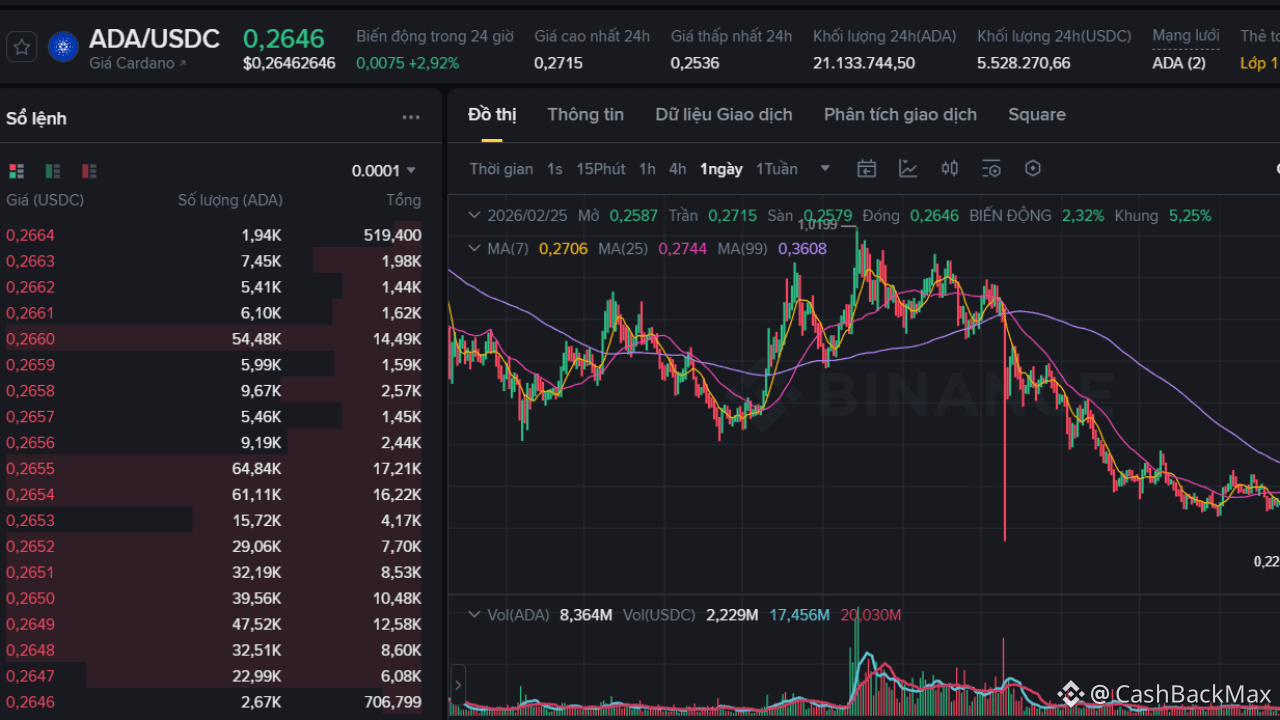 Fino alla fine di febbraio 2026, #ADA sta negoziando attorno a 0,27 USD. Questo è un numero piuttosto modesto se confrontato con il picco del 2025, equivalente a una diminuzione di oltre il 70% negli ultimi 6 mesi. In particolare: