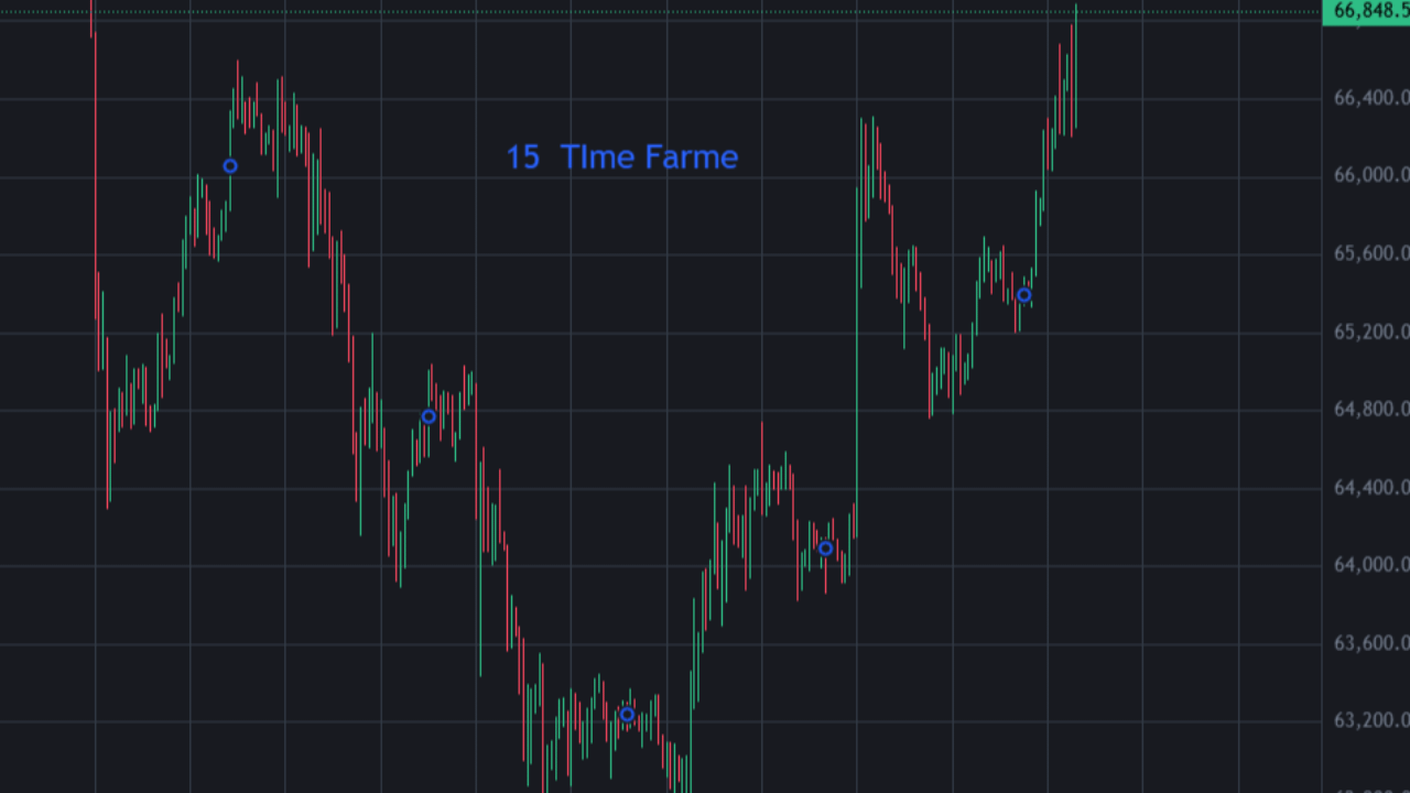 Nel grafico a 15 minuti, Bitcoin sta formando massimi e minimi crescenti, indicando una chiara struttura rialzista a breve termine.