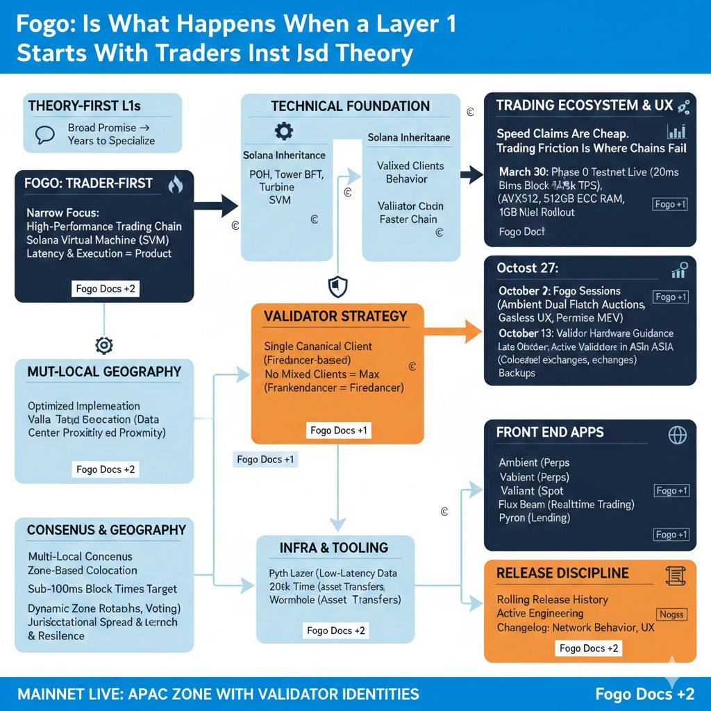 If you step back, Fogo’s real thesis is not just “faster blockchain.” It is that trading quality on chain depends on an entire stack working together: fast execution, predictable validator performance, location aware consensus, app level UX that removes signing friction, and a developer surface that does not require retraining. Whether Fogo ultimately becomes a major DeFi venue will depend on liquidity, sustained ecosystem growth, and how well it handles decentralization concerns as it scales, but the technical and product direction is unusually coherent for a newer L1. It is clearly designed for people who care about fills, latency, and execution quality more than generic chain branding.