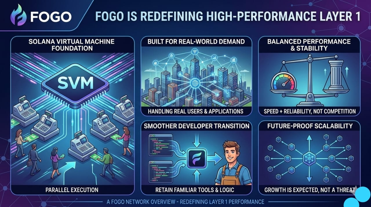 When I look at the way blockchain is growing, I can honestly feel that the space is moving past experiments and into a stage where real performance actually matters, and that is where Fogo stands out to me as a high-performance Layer 1 built around the Solana Virtual Machine. I’m not just seeing another chain that talks about speed in theory, because what makes Fogo interesting is that they’re building with the intention of handling real demand, real users, and real applications without slowing down the moment activity increases. It feels less like a temporary trend and more like infrastructure designed for the long run, where performance is treated as a responsibility instead of a feature.