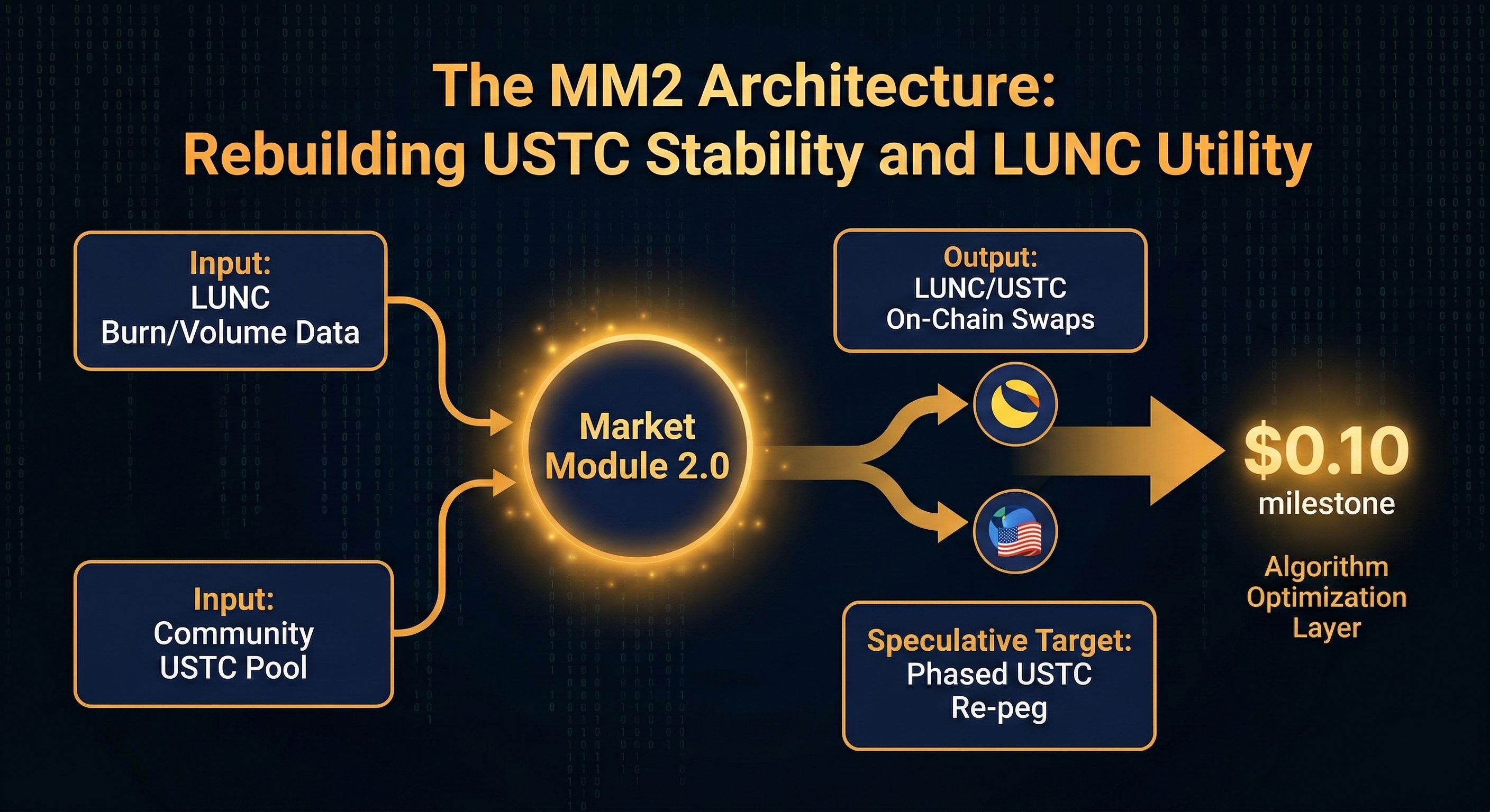 Riattivazione del Modulo di Mercato: La comunità sta attualmente testando "Modulo di Mercato 2.0" (MM2). Se avrà successo, questo riabiliterà il meccanismo di scambio on-chain tra LUNC e USTC, potenzialmente ponendo le basi per una strategia di re-aggancio USTC altamente speculativa e graduale.
