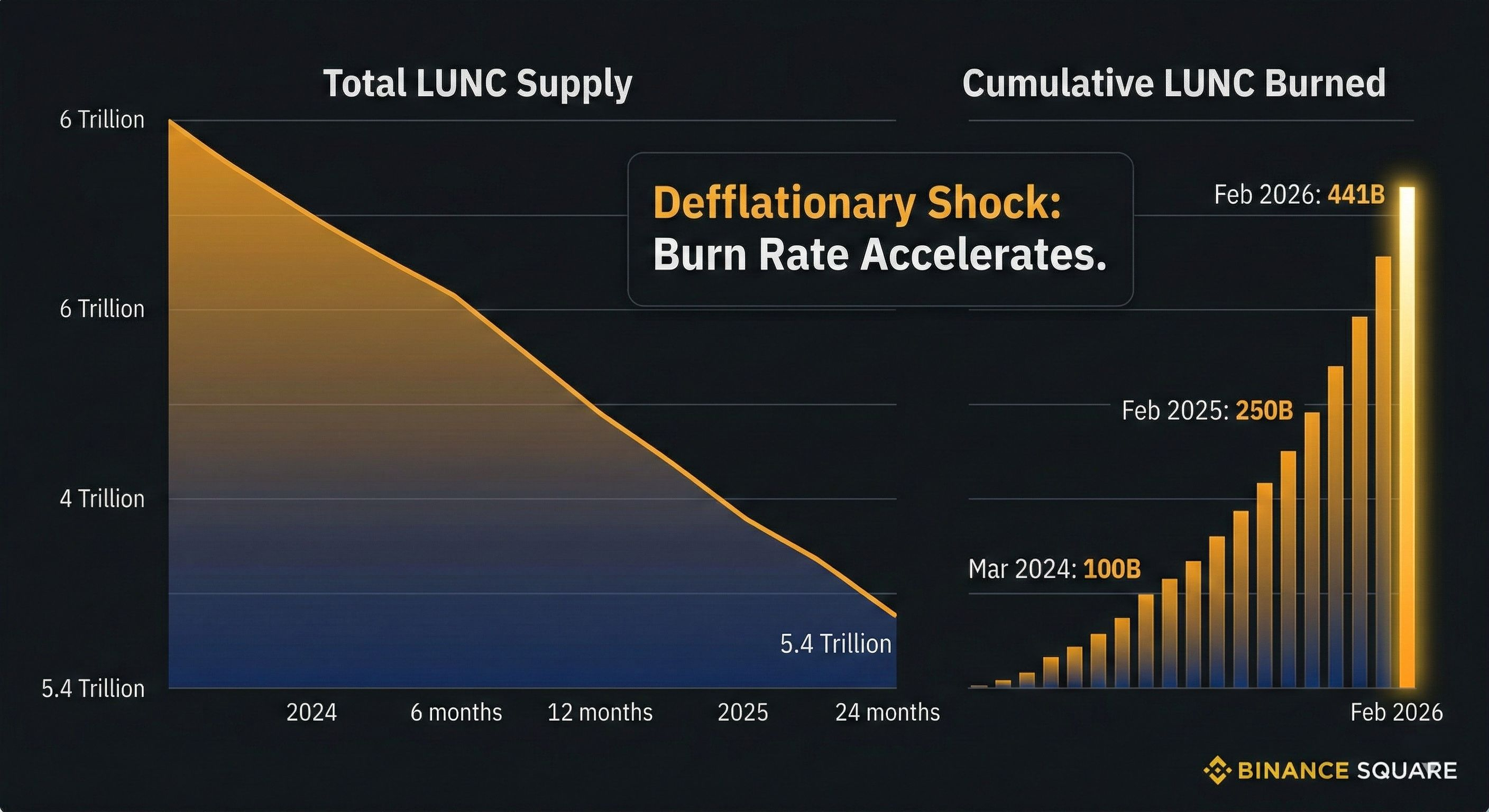La tesi fondamentale per LUNC nel 2026 si basa su uno shock dell'offerta. Per combattere l'iperinflazione della spirale di morte del 2022, la rete ha implementato una rigorosa tassa di burn, fortemente supportata da grandi scambi.