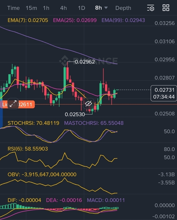 Formazione di Doppio Fondo: Gli analisti hanno notato un potenziale modello 'Doppio Fondo' in formazione intorno alla zona di supporto $0.025 - $0.026. Se il prezzo supera con successo il collo a $0.028, i prossimi obiettivi sono previsti a $0.030 e infine la resistenza principale a $0.058 (media mobile a 200 giorni).