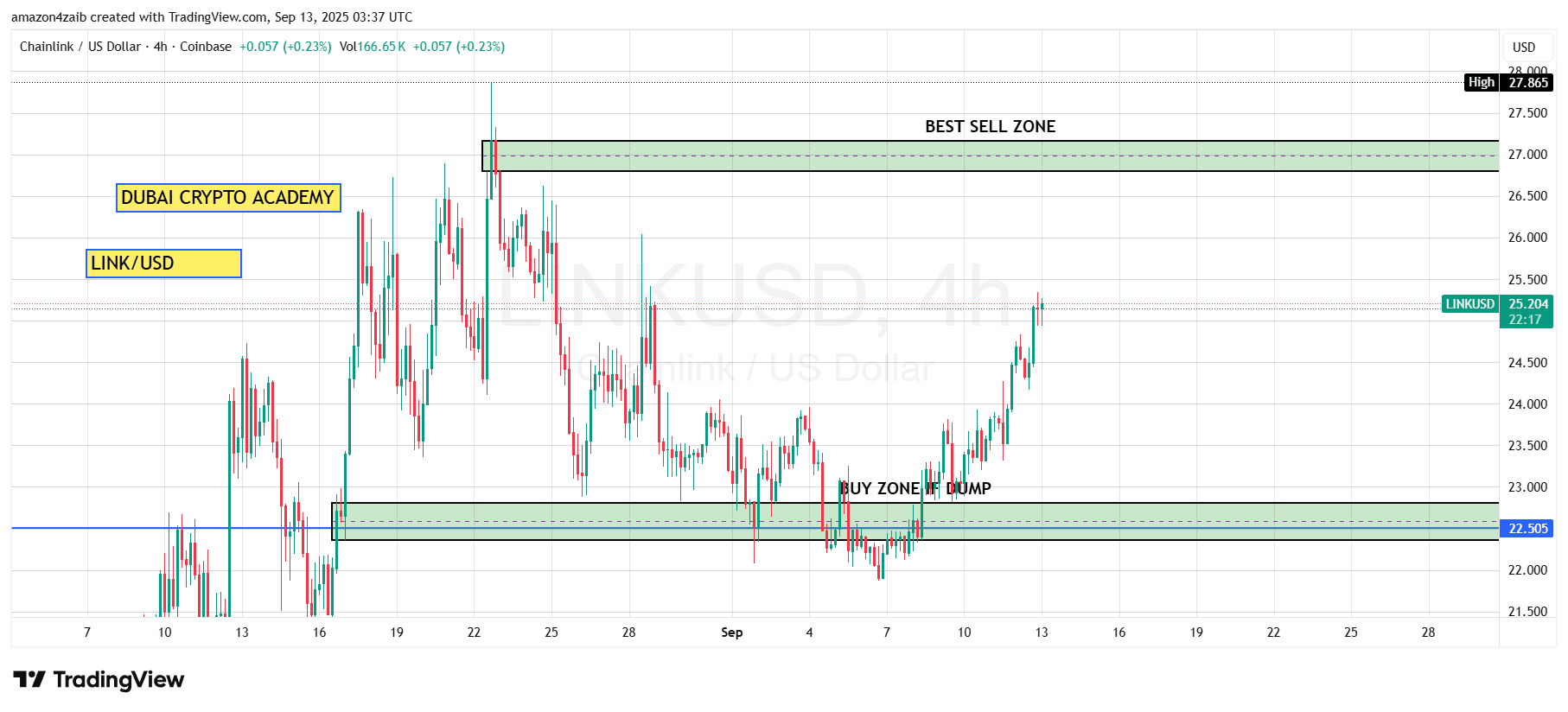 Zona di Acquisto (se crolla): Intorno a $22 – $22.5, che ha agito come una forte domanda in precedenza. Se il prezzo scende in questa zona, potrebbe offrire una solida opportunità di acquisto.