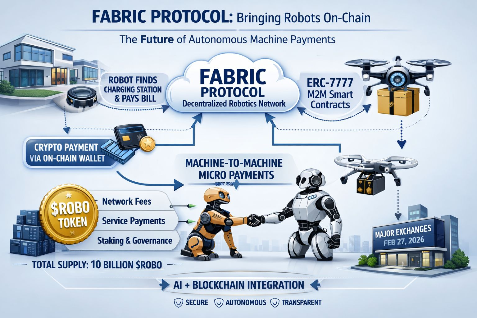 Ora arriviamo alla parte più fantastica e tecnica: Smart Contracts e Micro-pagamenti Machine-to-Machine, ovvero M2M. In precedenza, i robot seguivano solo istruzioni codificate, ma ora, grazie agli standard di identità on-chain ERC-8004 e ERC-7777 del Fabric Protocol, queste macchine hanno ottenuto una propria capacità finanziaria. Proprio come tu e io facciamo facilmente pagamenti in crypto, ora i robot possono eseguire micro-pagamenti M2M tra di loro. Se un drone autonomo consegna il tuo pacco, allora il contratto intelligente del protocollo rilascerà automaticamente il pagamento in crypto per la sua parte. Non ci sono intermediari terzi, tutto è trasparente e basato sul codice!