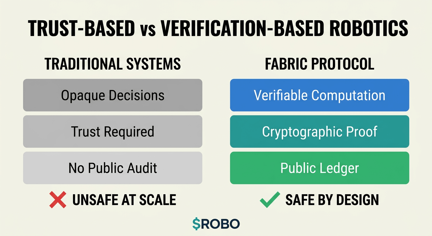 There is a problem at the foundation of how most robotics systems are being built today, and the problem is not primarily technical in the sense of hardware limitations or software bugs that can be fixed through better engineering. The problem is architectural, and it has to do with the fact that most robotics platforms ask humans to trust systems whose decision-making processes are opaque, whose data sources are unverifiable, and whose governance structures are controlled by entities whose incentives may not align with the long-term safety and reliability that general-purpose robotics requires. @Fabric Foundation approached this problem from a different starting point, which is that trust in robotics systems should not be based on the reputation of the company that built them or the promises made in marketing materials. It should be based on the ability to verify computationally that a robot did what it claimed to do, used the data it claimed to use, and followed the rules it was supposed to follow.