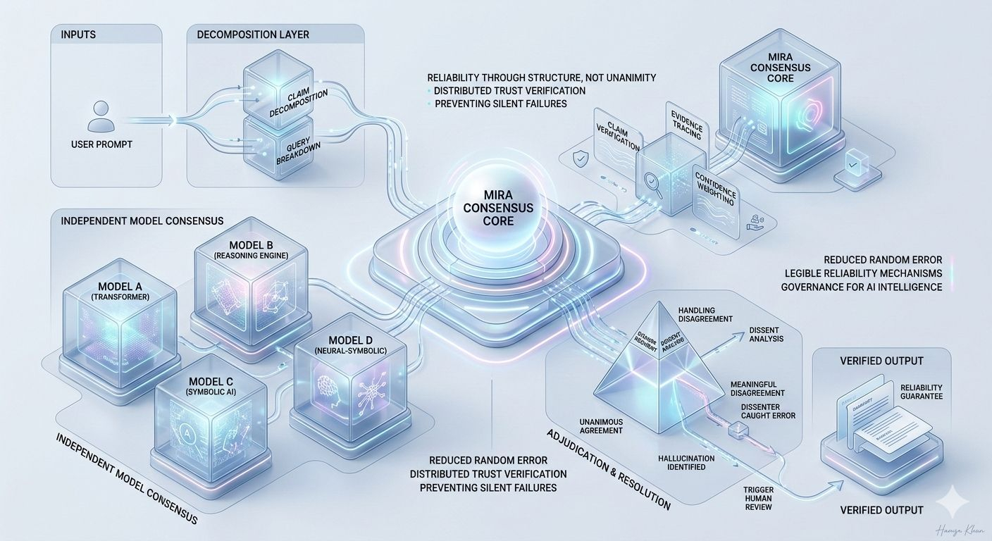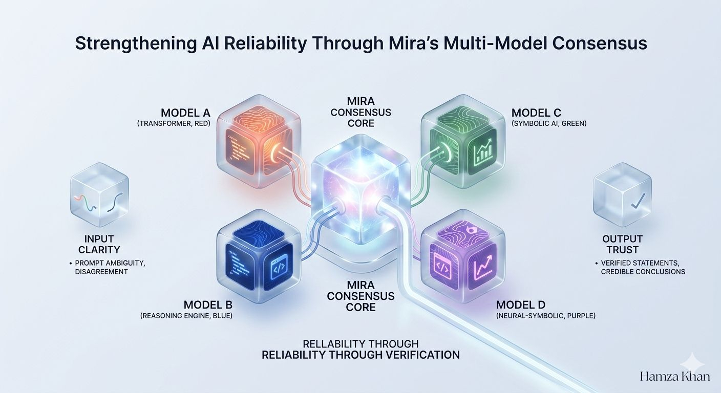 Quando sento “consenso multi-modello per l'affidabilità dell'IA”, la mia prima reazione non è fiducia. È cautela. Non perché controllare a croce i risultati sia una cattiva idea, ma perché la frase rischia di suonare come una garanzia matematica in un dominio che rimane fondamentalmente probabilistico. L'accordo tra i modelli può segnalare fiducia — ma può anche segnalare punti ciechi condivisi. L'affidabilità non deriva solo dall'unanimità. Deriva da come viene gestito il disaccordo.