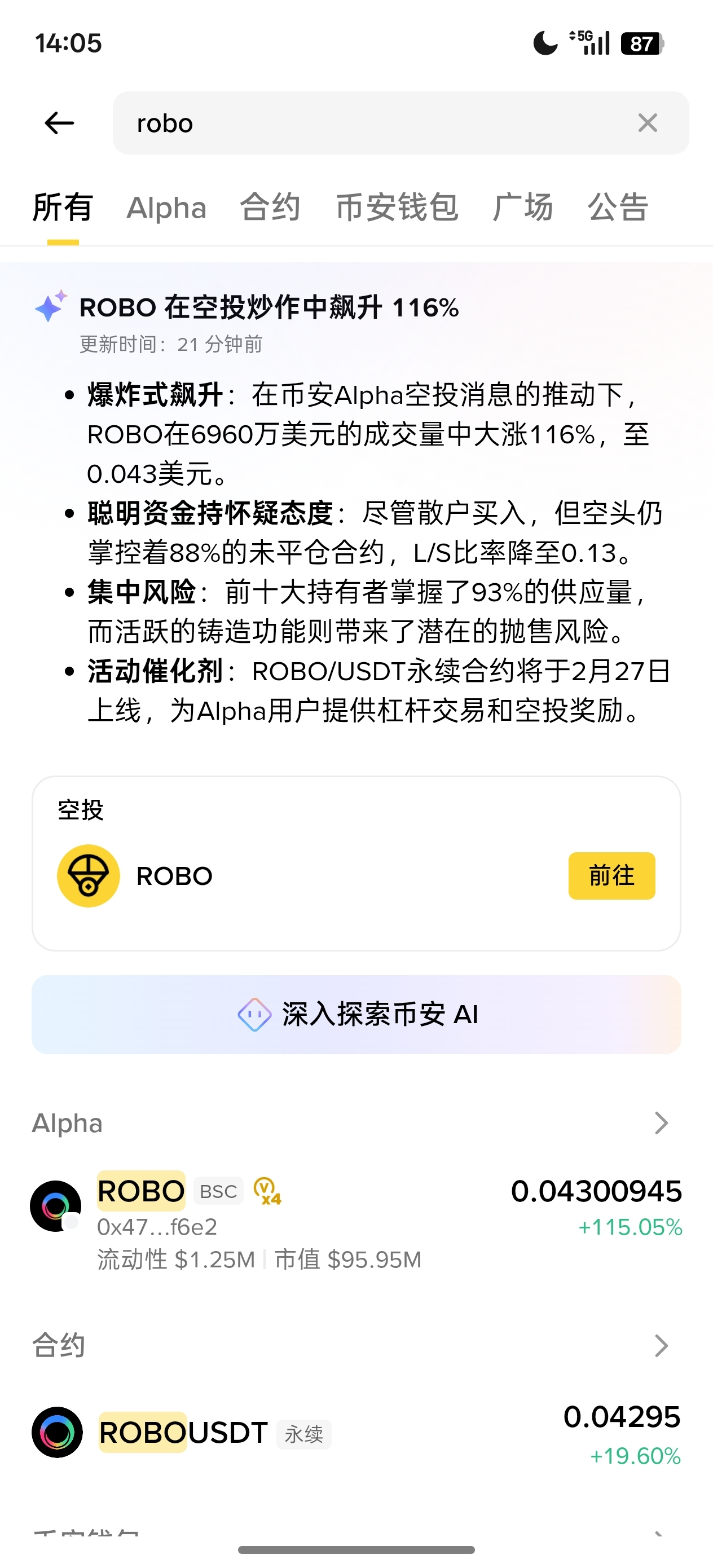 短期:低流通市值 + 多所上线 + 合约开通 + AI+机器人赛道热度,资金博弈情绪容易点燃。