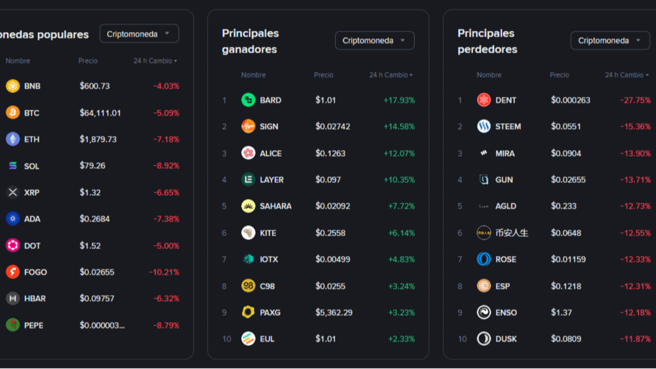 Speculazione Estrema: Mentre il mercato generale scende, token di liquidità bassissima come GWEI (+27,85%) o BARD (+17,93%) presentano aumenti volatili che di solito precedono a bruschi cali.