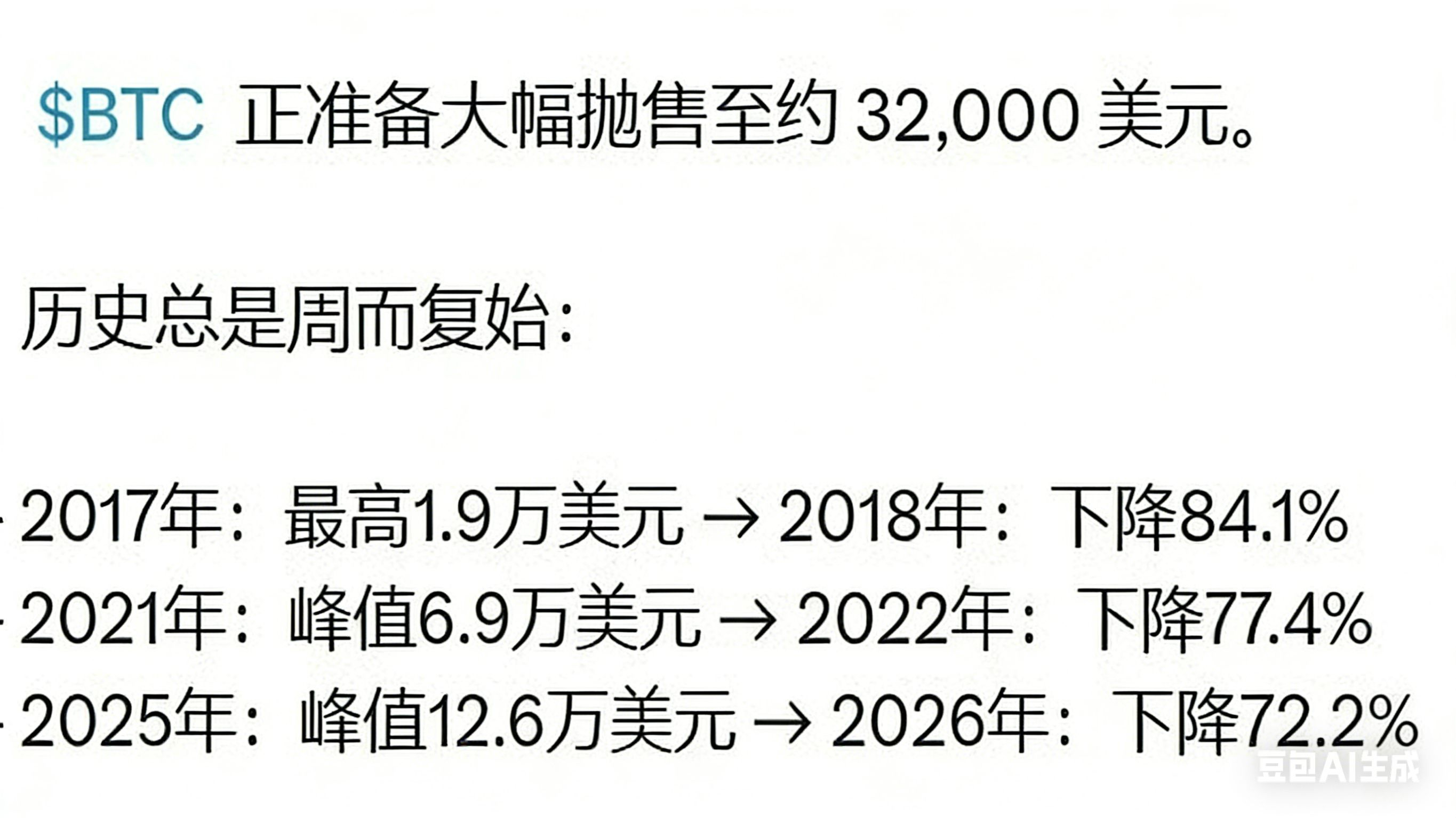 - 2025年:峰值12.6万美元 → 2026年:下降72.2%