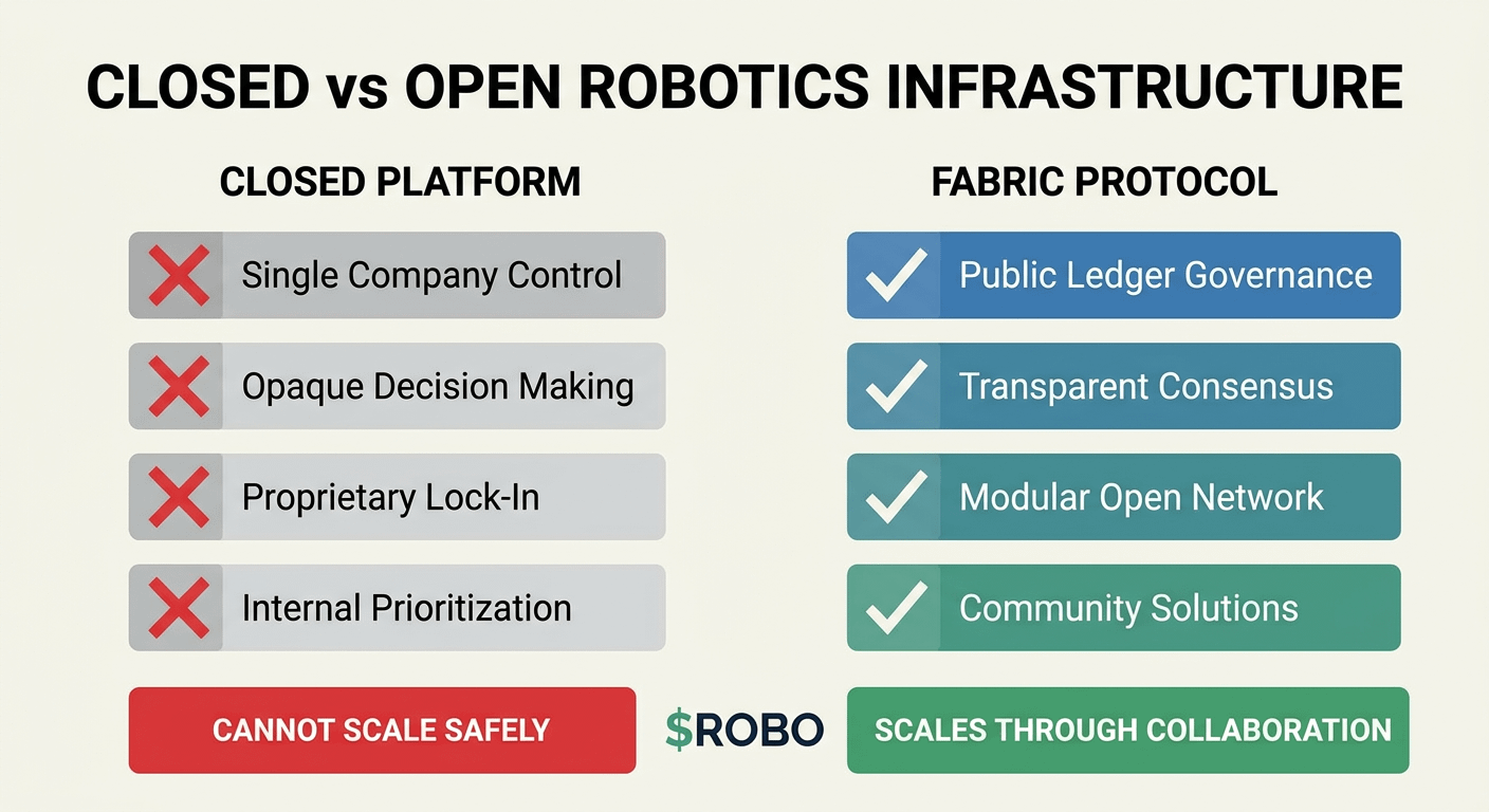 The robotics industry is approaching a critical architectural decision point that will determine whether general-purpose robots become infrastructure that serves the broader public interest or whether they become proprietary systems controlled by a small number of companies optimizing for objectives that may not align with safety, transparency, or collaborative evolution. Most robotics platforms being built today are following the same closed infrastructure model that dominated earlier technology waves, where a company builds a proprietary stack, attracts users through features and marketing, and then leverages the resulting lock-in to extract value from an ecosystem that has limited alternatives. @Fabric Foundation was designed from the beginning to prove that a different model is possible, and more importantly, that the different model is the only model that makes general-purpose robotics safe and sustainable at the scale that matters.