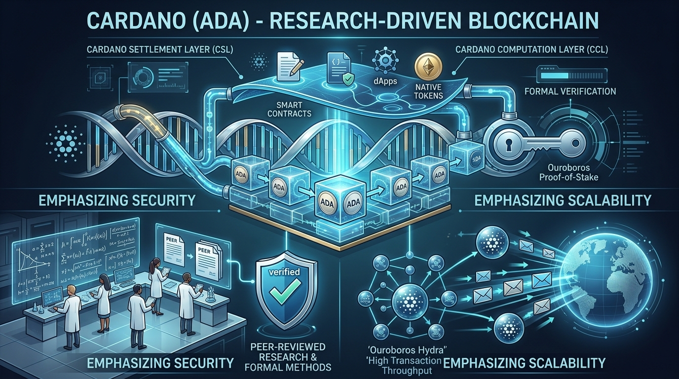 8. Cardano (ADA) – Research-driven blockchain emphasizing security and scalability.
