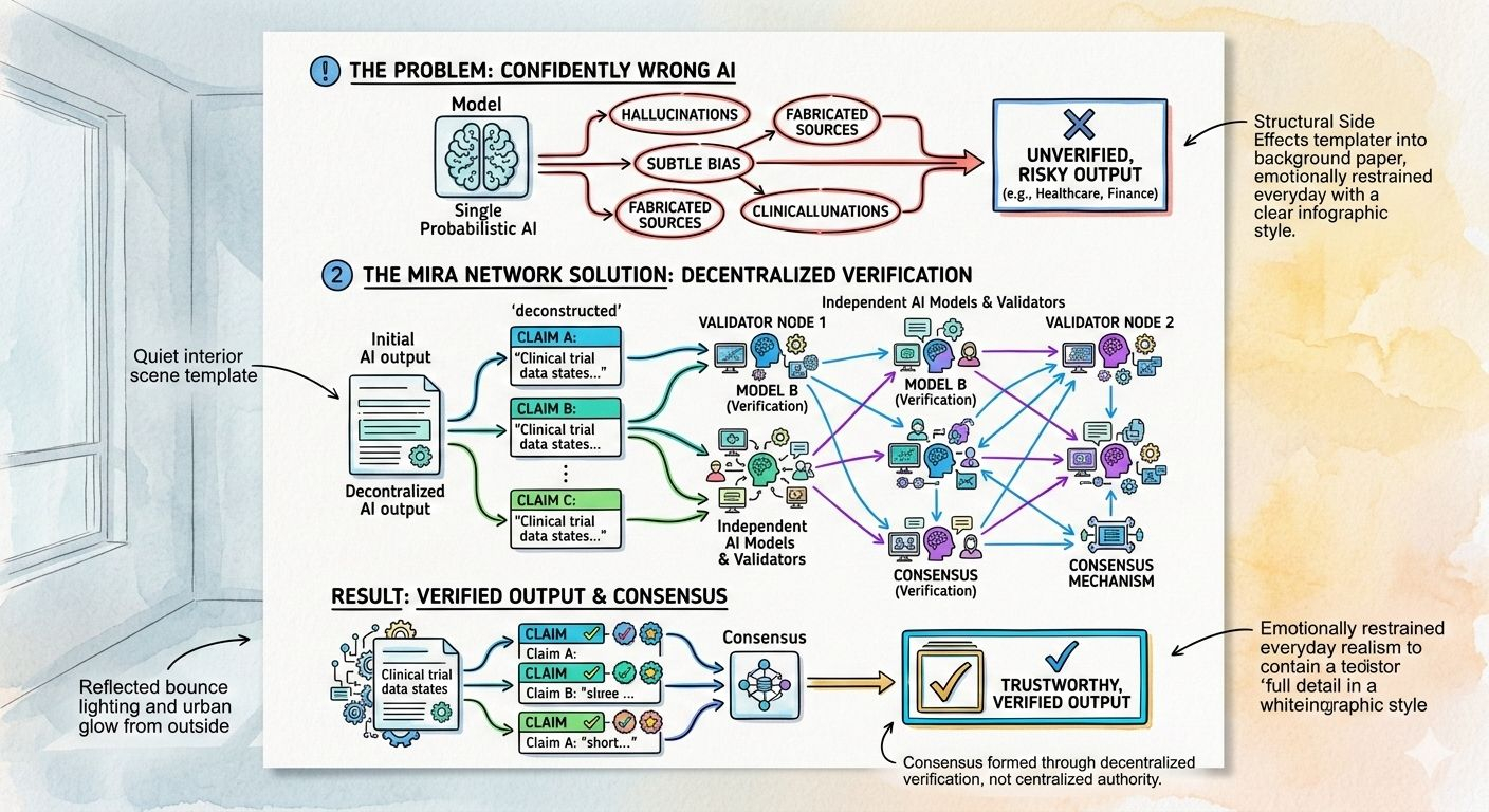 Artificial intelligence is impressive. It writes, analyzes, summarizes, codes, and even reasons in ways that felt impossible just a few years ago. But anyone who has used it seriously knows the uncomfortable truth: it can be confidently wrong. Hallucinations, subtle bias, fabricated sources — these are not rare edge cases. They are structural side effects of probabilistic systems. When AI is used for entertainment, that might be acceptable. When it’s used for finance, healthcare, governance, or autonomous systems, it becomes a serious problem.