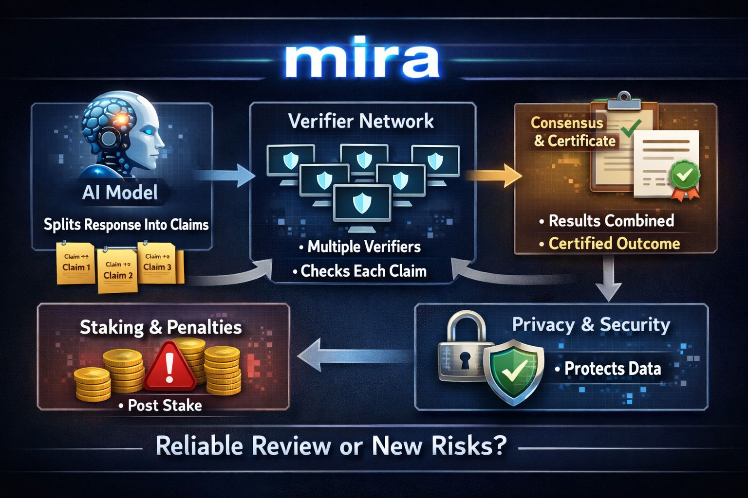 Messari’s coverage takes a similar angle, characterizing Mira as a decentralized audit layer for AI results and explaining how its approach—splitting outputs into concrete claims and pushing them through a consensus step—aims to increase credibility before those results ever reach the end user.
