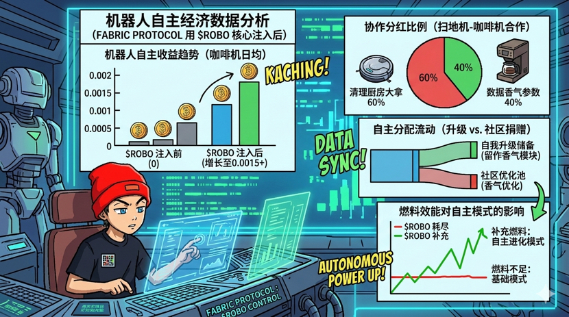 不到4分钟,咖啡机屏幕亮起新界面。它主动扫描厨房环境,结合我的手机日历(周六我通常9点起),提前半小时磨豆煮咖啡,还根据湿度自动调整研磨粗细,让咖啡更香。煮完后,它在屏幕上弹出:“本次自主任务完成,创造额外价值0.0015 ROBO,已自动分配:0.0009留作下次香气模块升级,0.0006捐给社区咖啡优化池。”