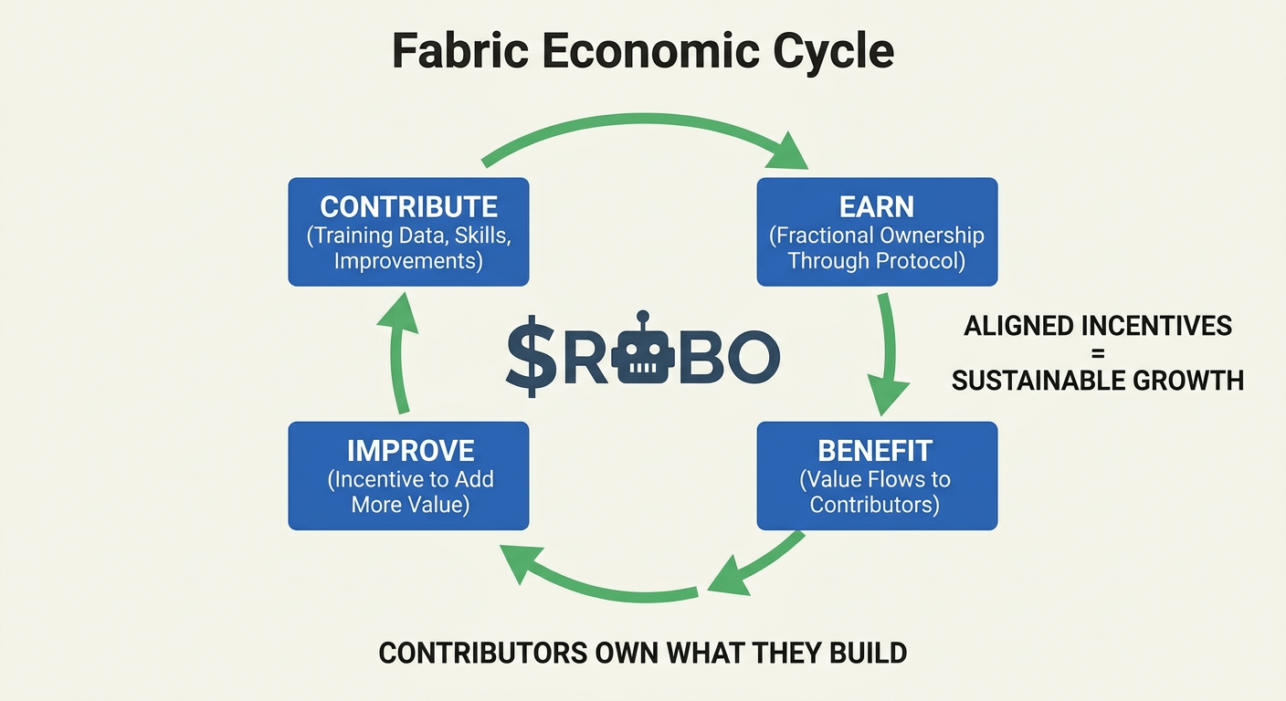 This creates an economic cycle where the people who make the system better own the benefits of making the system better, which means their incentives are aligned with building capabilities that have long-term value rather than with extracting maximum short-term revenue before competitors catch up. A contributor who owns fractional stake in the protocol benefits when the protocol becomes more useful, which means they have incentive to contribute genuinely valuable improvements rather than incremental features that look good in marketing materials but do not actually make robots more capable.