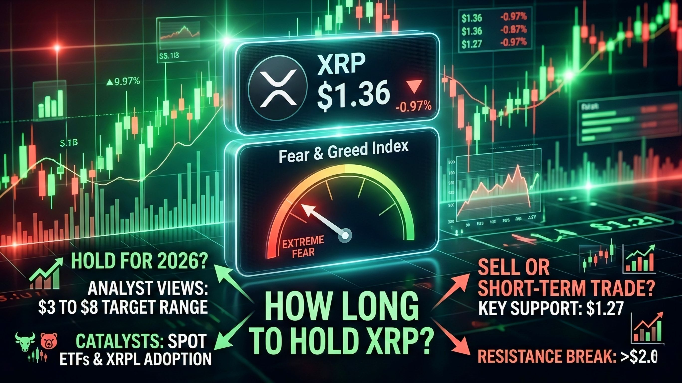Decidere quanto a lungo mantenere XRP è diventata una battaglia psicologica significativa per molti investitori. Con l'asset attualmente attorno a $1,36 e l'Indice di Paura e Avidità che segnala "Paura Estrema", il mercato è profondamente diviso. Mentre alcuni sono fissati sul divario tra i prezzi attuali e il massimo di 52 settimane di $3,64, la decisione di mantenere o vendere oggi dipende interamente dalla tua fiducia nell'utilità sottostante di Ripple e nei prossimi catalizzatori per il 2026.