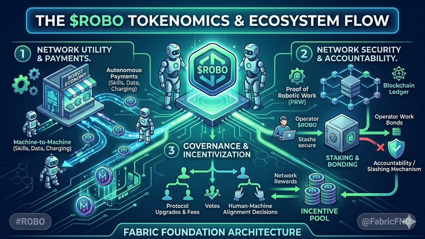 $ROBO non è solo un asset speculativo; è il carburante funzionale dell'ecosistema Fabric. La sua utilità è multifaccettata: