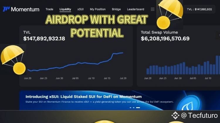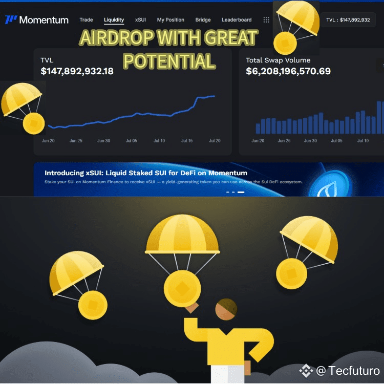 The project I'm talking about is Momentum. It's the largest dex within SUI, with a TVL of over 140 million and growing daily. Exposing yourself to this project's airdrop is as simple as using it. If you do it intelligently, you can even earn while farming the airdrop. Below is my strategy. However, it's not investment advice, nor do you have to replicate it.