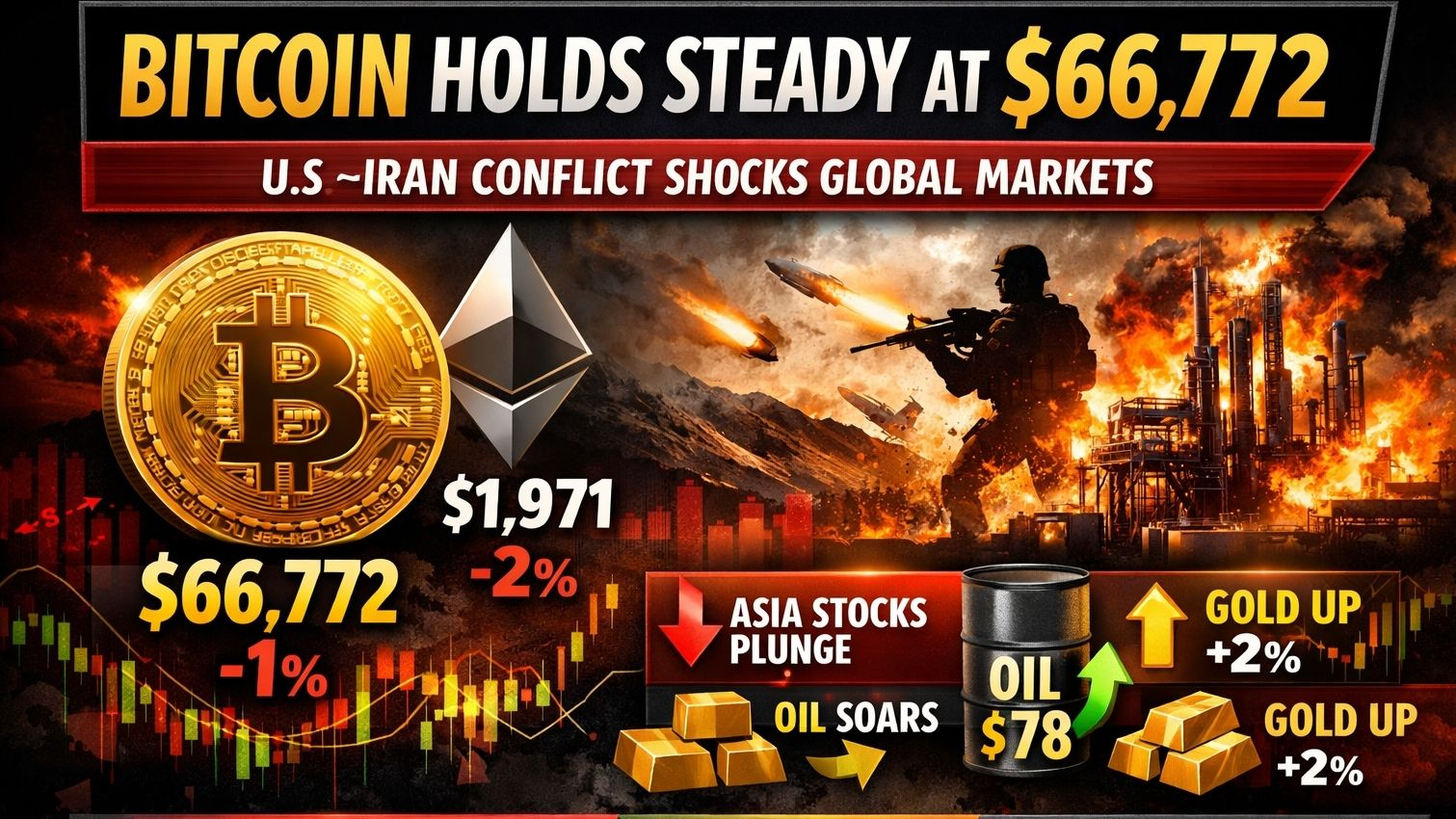 Bitcoin remained relatively stable around the $66,000 level on Monday, even as global markets reacted sharply to escalating tensions between the United States and Iran.
