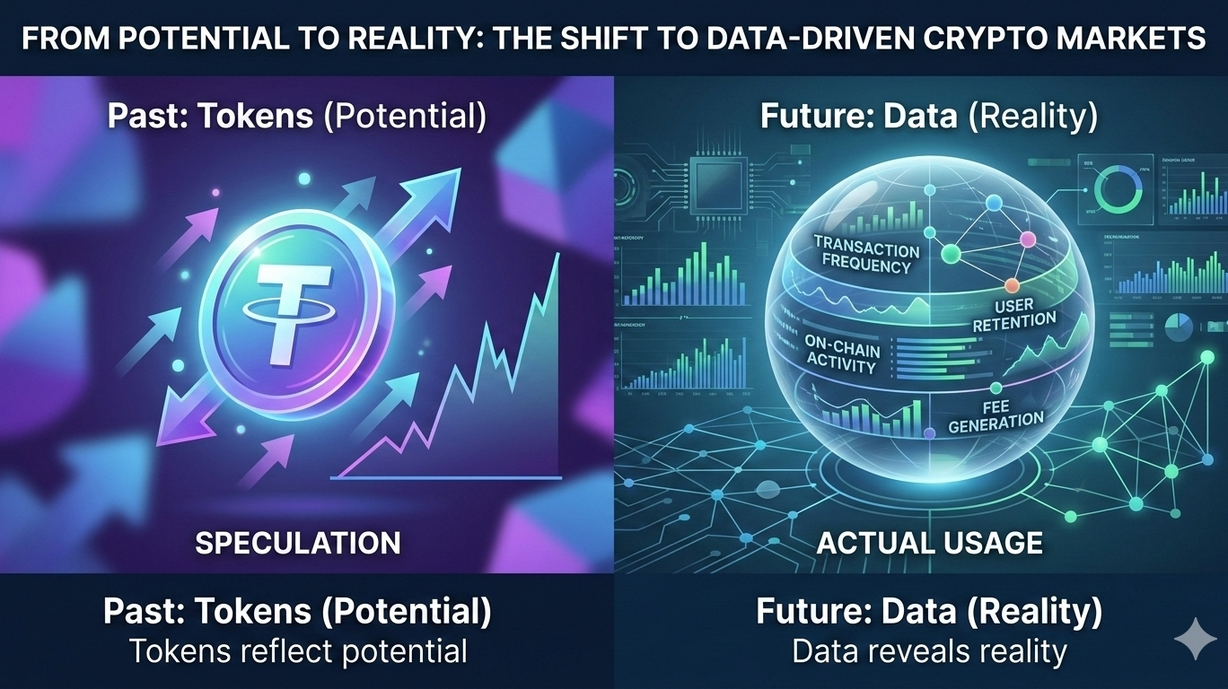 Nelle fasi iniziali della crittografia, il valore era misurato quasi interamente in token. I grafici dei prezzi definivano il successo e la crescita della rete era spesso dedotta dalla speculazione piuttosto che dall'uso. Oggi, si sta verificando un cambiamento più silenzioso. La risorsa più preziosa nella crittografia è sempre meno il token stesso, ma i dati generati dalla rete.