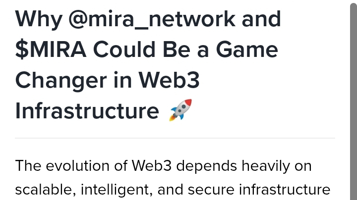 Tenere $MIRA non riguarda solo la speculazione; si tratta di sostenere l'innovazione nell'infrastruttura decentralizzata. Se Mira continua a seguire il suo piano e ad espandere il suo ecosistema, potrebbe diventare un livello fondamentale a supporto delle applicazioni Web3 di nuova generazione.