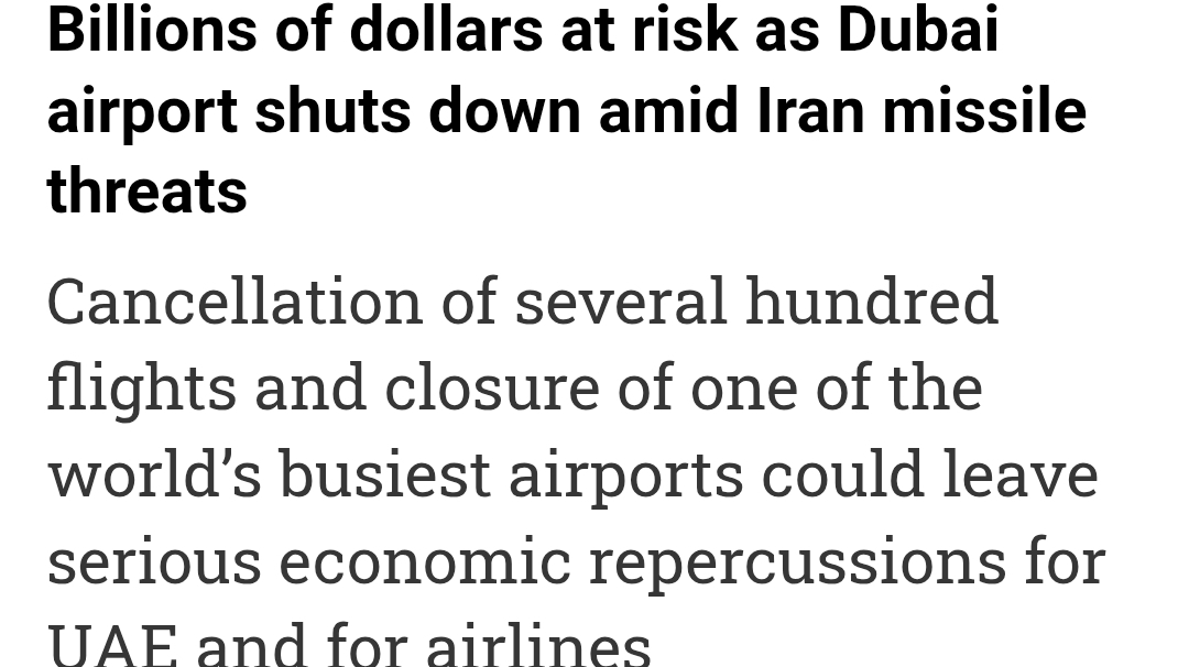 ⚡️Dubai perde circa $1 milione ogni minuto (!) a causa dell'inattività dell'aeroporto (considerando Emirates, transiti, hotel, shopping, taxi).