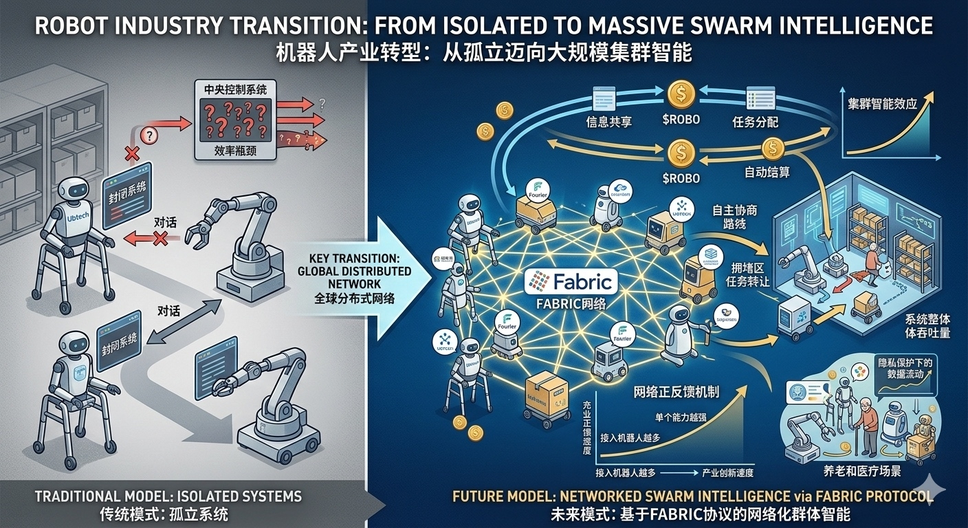机器人产业正从单机作战迈向大规模群体智能时代。这背后的关键转变在于,不同品牌、不同地域的机器人开始形成一个互联互通的网络,而Fabric协议正是这个网络的底层连接器。