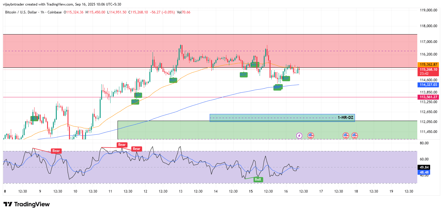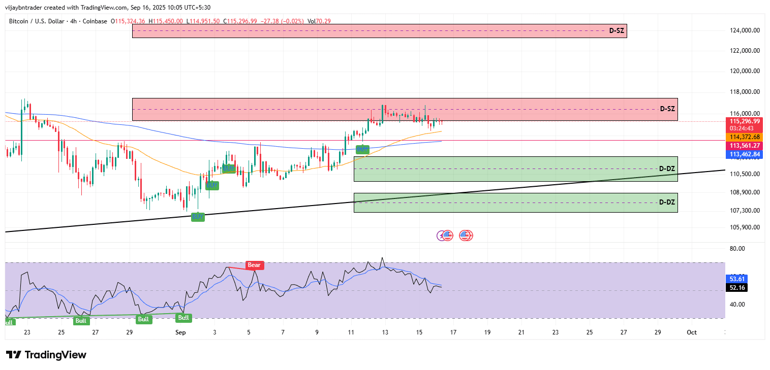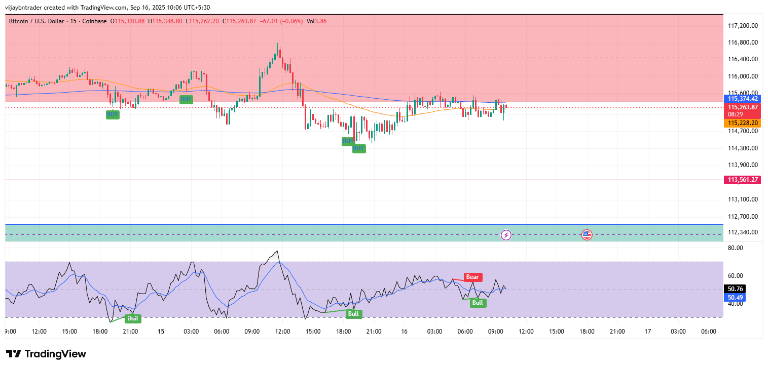 Zona neutra: intervallo 115,000-115,500 finché l'RSI non fornisce conferma direzionale