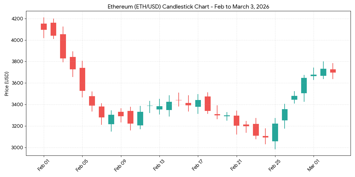 ETH/USD Candlestick Chart (Feb - March 3, 2026)