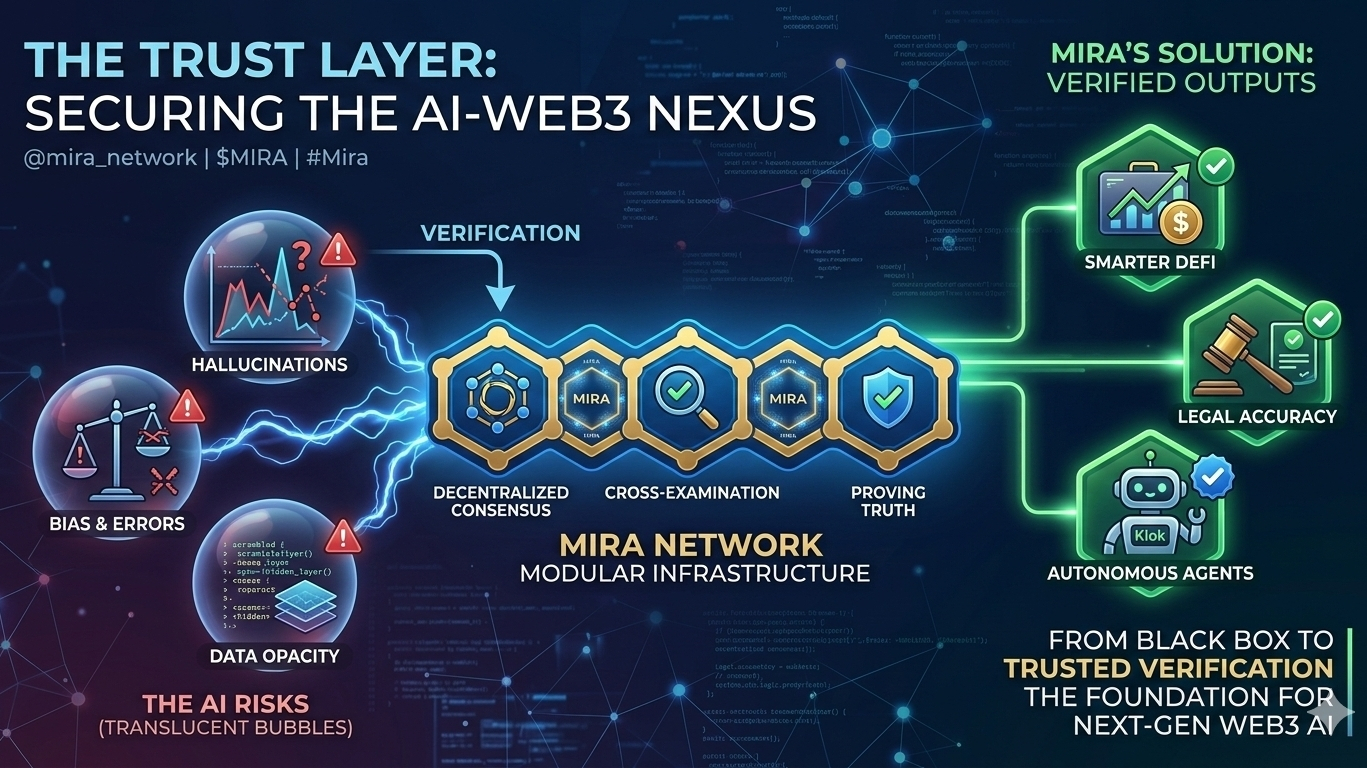 Abbiamo tutti visto l'AI "allucinare"—affermazioni sicure di fatti completamente inventati. In una chiacchierata informale, questo è un piccolo errore; nella finanza decentralizzata (DeFi) o nella tecnologia medica, è una catastrofe. $MIRA affronta questo problema implementando un'infrastruttura modulare dove le uscite dell'AI non sono solo accettate—sono verificate attraverso un consenso decentralizzato. Avere più nodi e modelli che esaminano i dati incrociati, la rete filtra i pregiudizi e gli errori prima che raggiungano l'utente finale.
