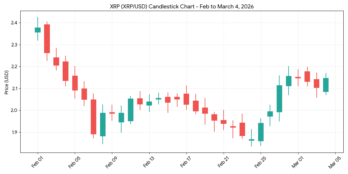 XRP/USD Candlestick Chart (Feb - March 4, 2026)