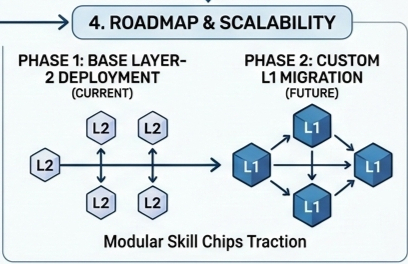 * Phase 1 Deployment: Abhi current network Layer 2 Base chain par actively deployed hai, jisse fast aur extremely low-cost transaction fees safely ensure hoti hai.