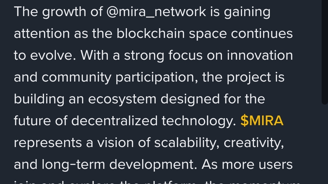 La crescita di @mira_network sta attirando l'attenzione mentre lo spazio blockchain continua a evolversi. Con un forte focus sull'innovazione e sulla partecipazione della comunità, il progetto sta costruendo un ecosistema progettato per il futuro della tecnologia decentralizzata. $MIRA rappresenta una visione di scalabilità, creatività e sviluppo a lungo termine. Man mano che più utenti si uniscono ed esplorano la piattaforma, il slancio continua a crescere. Siamo entusiasti di vedere come $MIRA si sviluppa e come la comunità contribuisce a plasmare il futuro della rete. #Mira