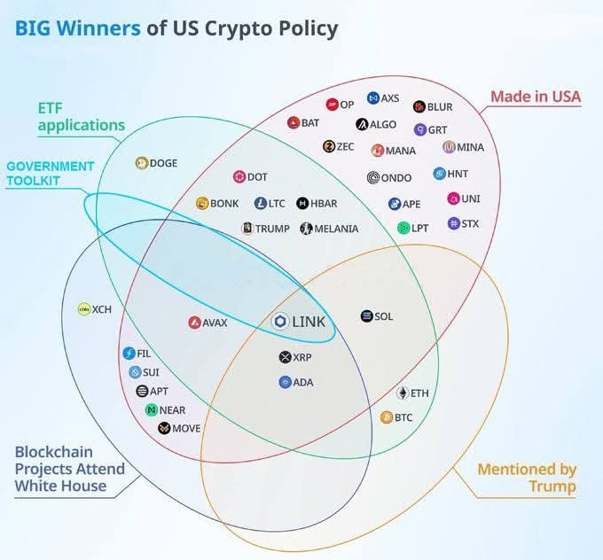 Nel grafico, alcuni progetti appaiono in più categorie — il che potrebbe renderli particolarmente interessanti se il quadro normativo diventa più definito.