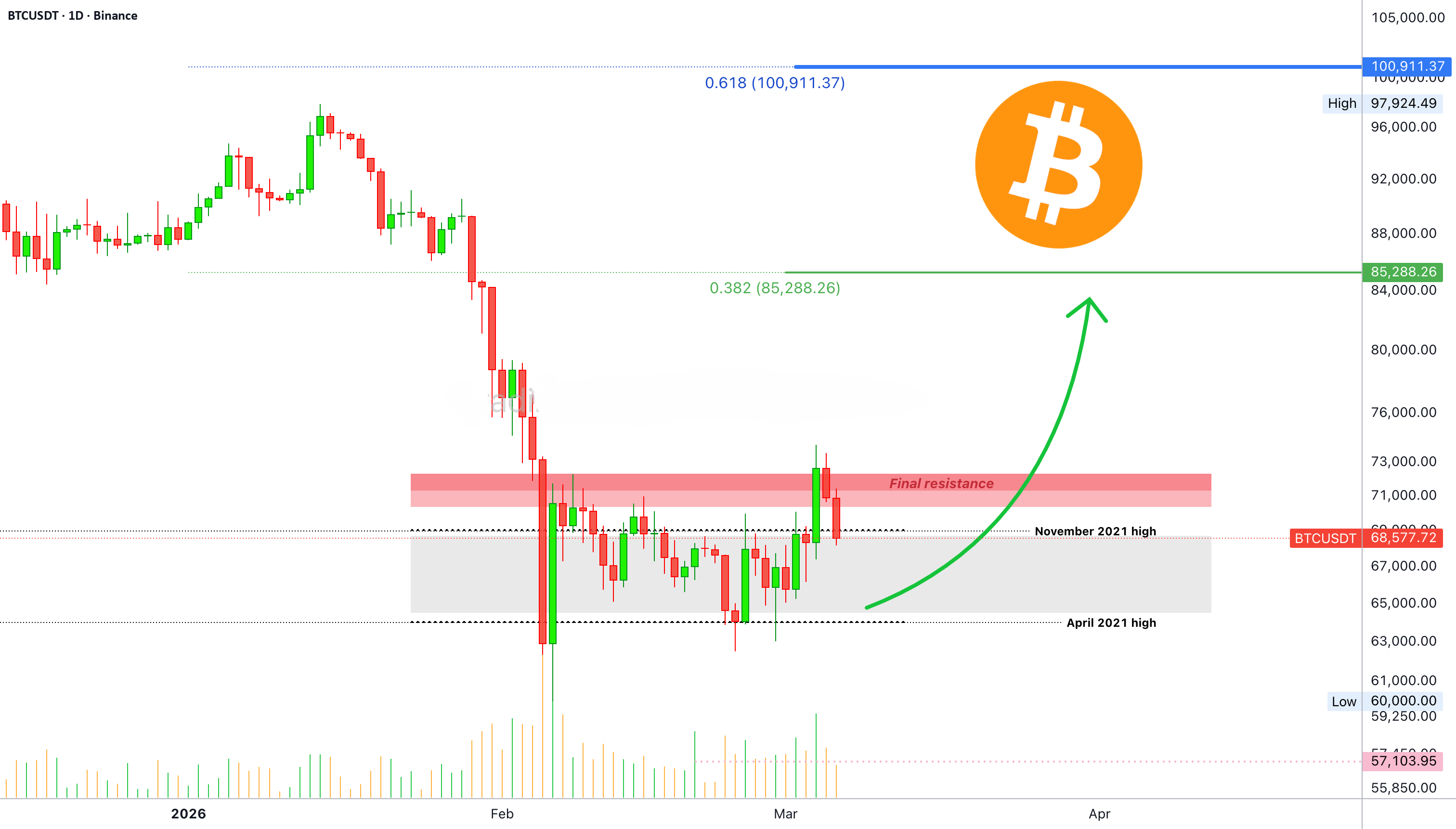 رفض مباشرة بعد الاختراق فوق المقاومة النهائية، الحاجز السعري $70,800-$73,000. هل كانت هذه مجرد عملية ضغط قصير؟ هل نتوقع حركة هبوط طويلة الأمد الآن؟ لا! لا أعتقد ذلك.