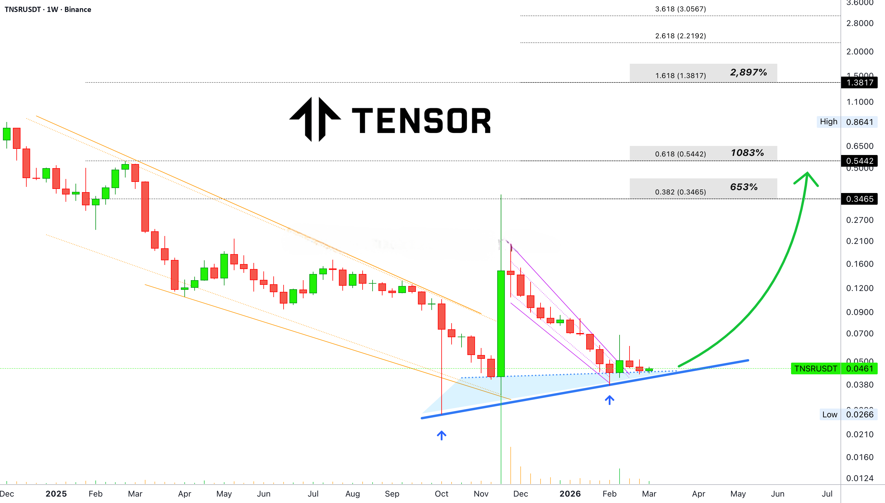 TNSRUSDT لديه قاع مستوي بناءً على إغلاق الشمعة وقاع مرتفع بناءً على فتيل الشمعة يعود إلى أكتوبر 2025.