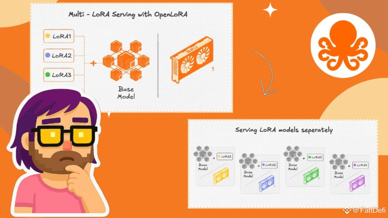 Ecco perché OpenLoRA ha catturato la mia attenzione. È progettato per servire migliaia di modelli LoRA su una singola GPU senza sforzo. Il trucco? Caricamento dinamico degli adattatori. Invece di pre-caricare tutto, estrae solo ciò di cui hai bisogno, lo unisce a un modello di base al volo e lo restituisce dopo l'inferenza. La memoria rimane snella, il throughput rimane alto, la latenza rimane bassa.