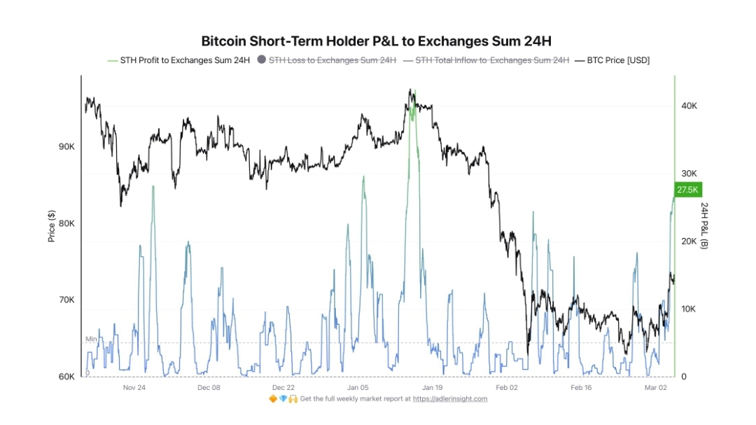 “Nonostante il leggero recupero del Bitcoin, i STH (Short Term Holders) non sembrano convinti e preferiscono realizzare profitti rapidamente,” ha scritto Darkfost. “Nelle ultime 24 ore, i STH hanno inviato più di 27.000 $BTC in profitti agli scambi, che si colloca tra i livelli più alti osservati negli ultimi mesi.”