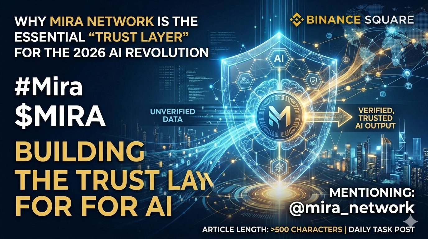 Man mano che ci addentriamo nel 2026, la conversazione attorno all'Intelligenza Artificiale è passata da "cosa può creare?" a "possiamo fidarci di ciò che dice?" Qui è dove entra in gioco @mira_network, fornendo un'infrastruttura decentralizzata critica che colma il divario tra le uscite dell'IA e la certezza a livello blockchain.