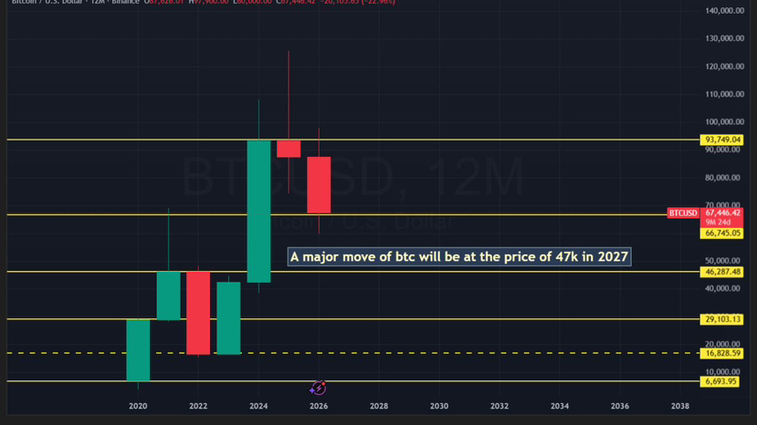 Questo livello di $47K potrebbe fungere da importante punto di riferimento nel 2027, preparando il terreno per un grande movimento più avanti nell'anno.