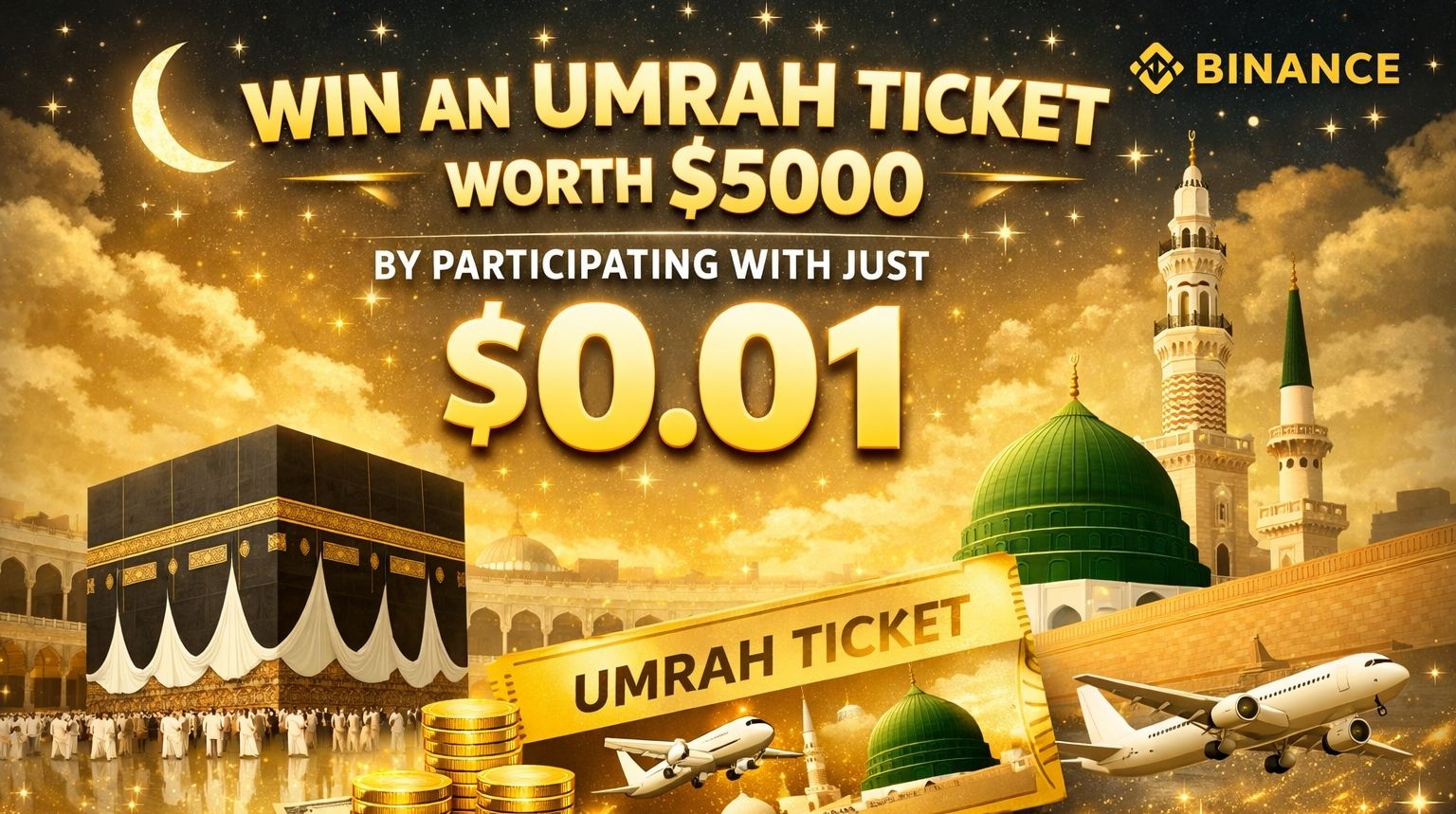 Molte campagne e omaggi entusiasmanti stanno apparendo nella comunità crypto. Un'opportunità interessante condivisa dagli utenti su è una campagna in cui i partecipanti possono provare a vincere un biglietto per l'Umrah del valore di $5000 partecipando con solo $0.01.