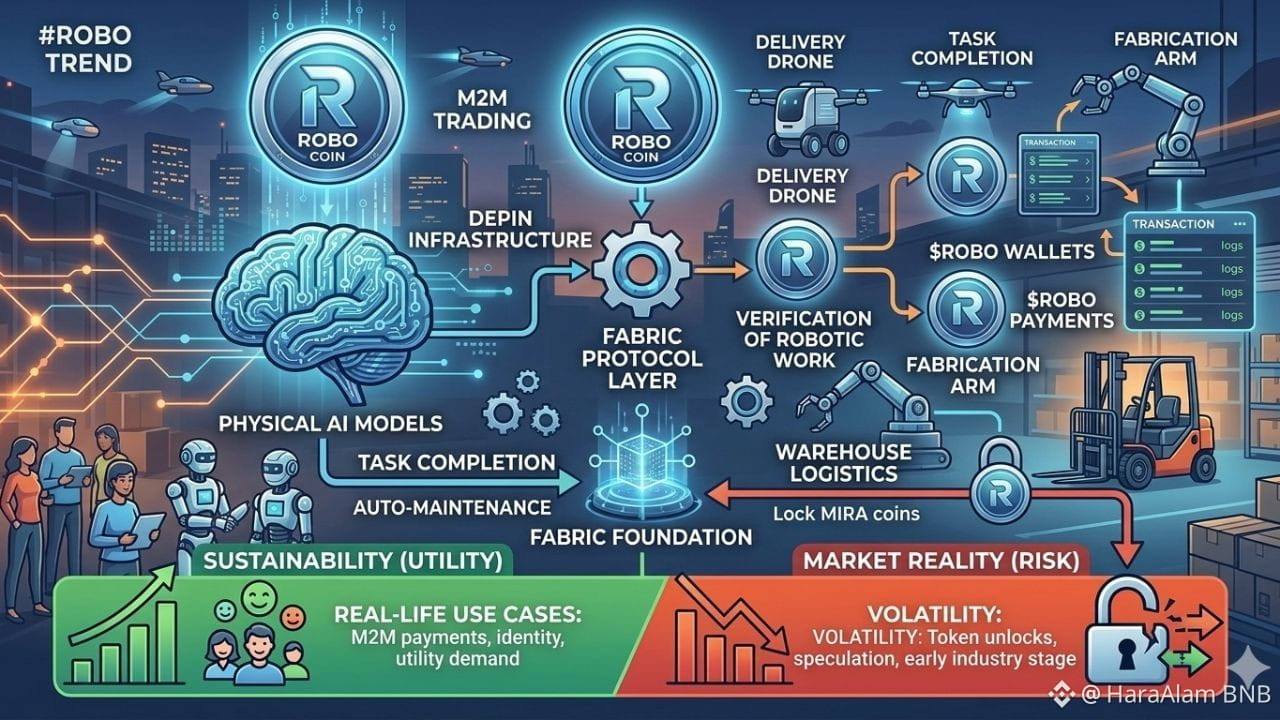 La sua sostenibilità è legata alla tendenza DePIN (Infrastruttura Fisica Decentralizzata). Perché risolve un problema reale: come i robot di marche diverse (come Tesla, AgiBot o UBTech) possono comunicare e scambiare—ha una base più solida rispetto alla maggior parte delle monete AI puramente speculative. Se l'adozione di robot fisici cresce nelle fabbriche e nella sanità, la domanda di $ROBO "gas" per queste macchine aumenta.