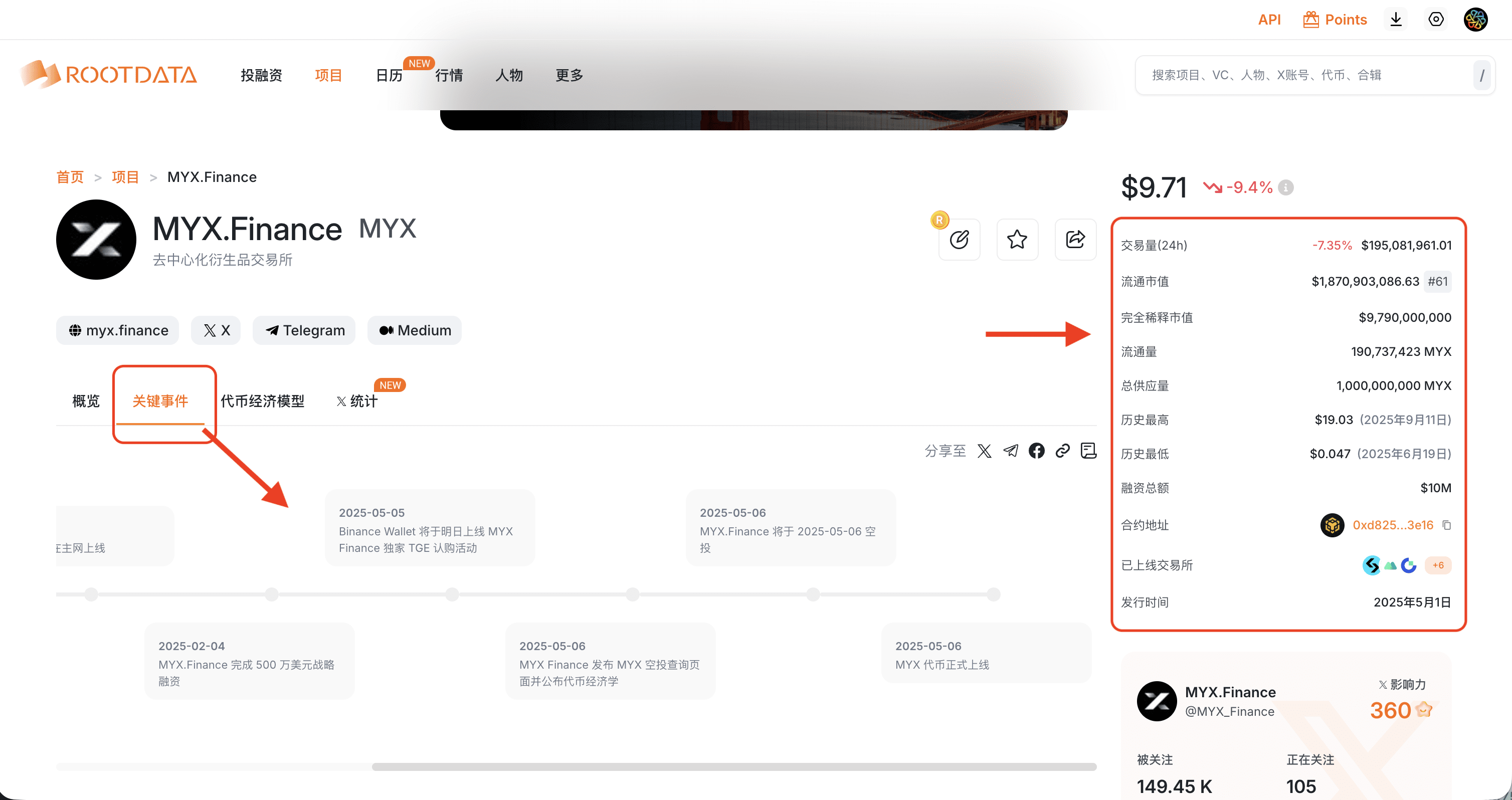 Puoi vedere il progresso dello sviluppo del progetto dalla sua origine negli eventi chiave, comprese le sostituzioni del progetto, i progressi del lancio, gli eventi di finanziamento, i cambi di nome del progetto, il rebranding, ecc. Comprendi a fondo la linea temporale del ciclo di vita del progetto.
