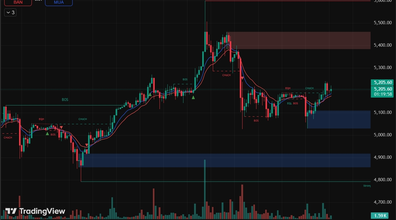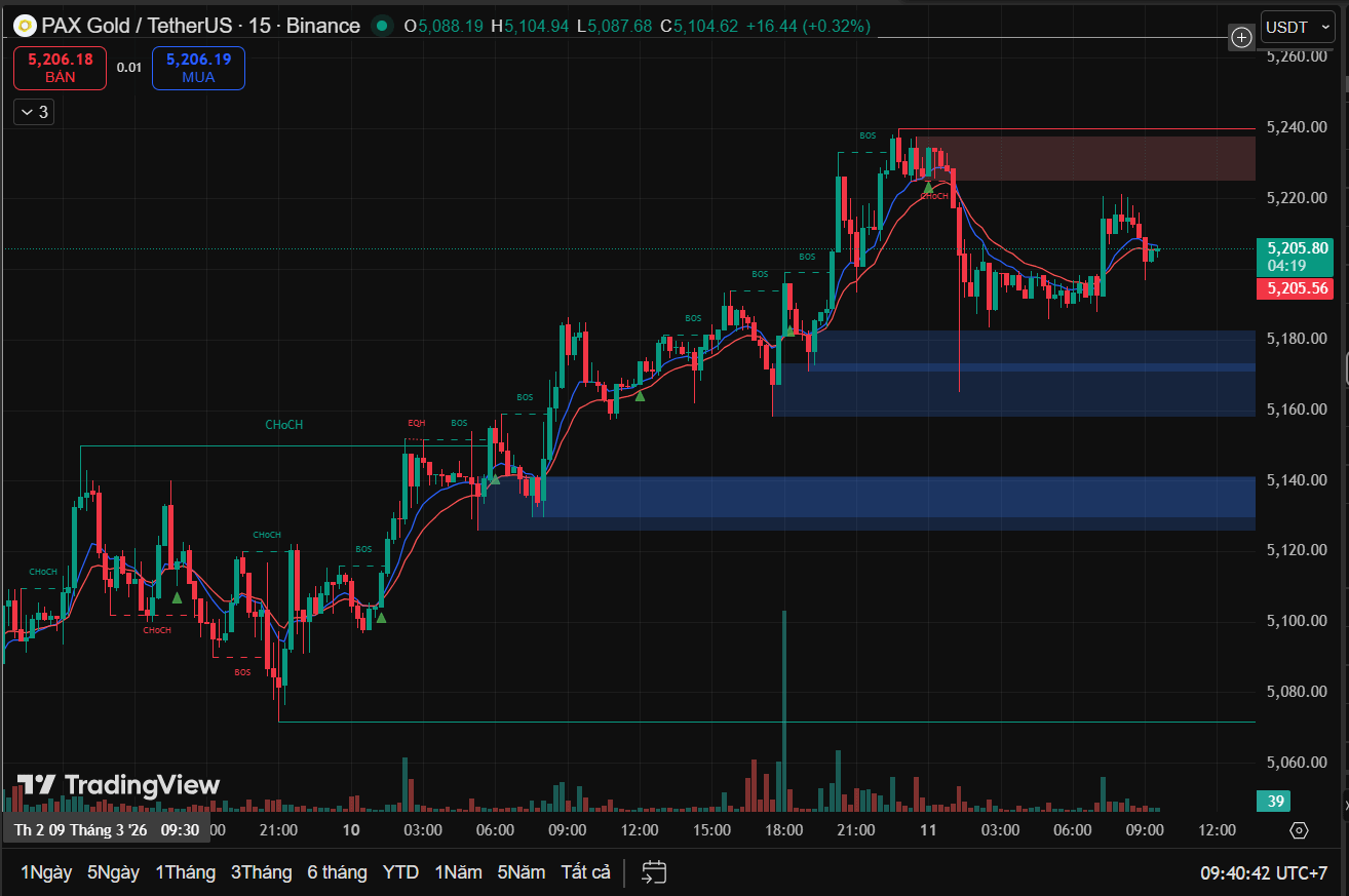 Theo phân tích kỹ thuật thị trường, các vùng hỗ trợ gần của PAXG thường quanh ~5000 và các vùng kháng cự nằm quanh 5100–5200+ trong ngắn hạn.