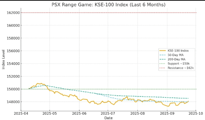 L'indice KSE-100 sta attualmente negoziando intorno a ~157.500. Il mercato ha fornito segnali misti nelle ultime sessioni — a volte un impulso rialzista, a volte vendite improvvise.