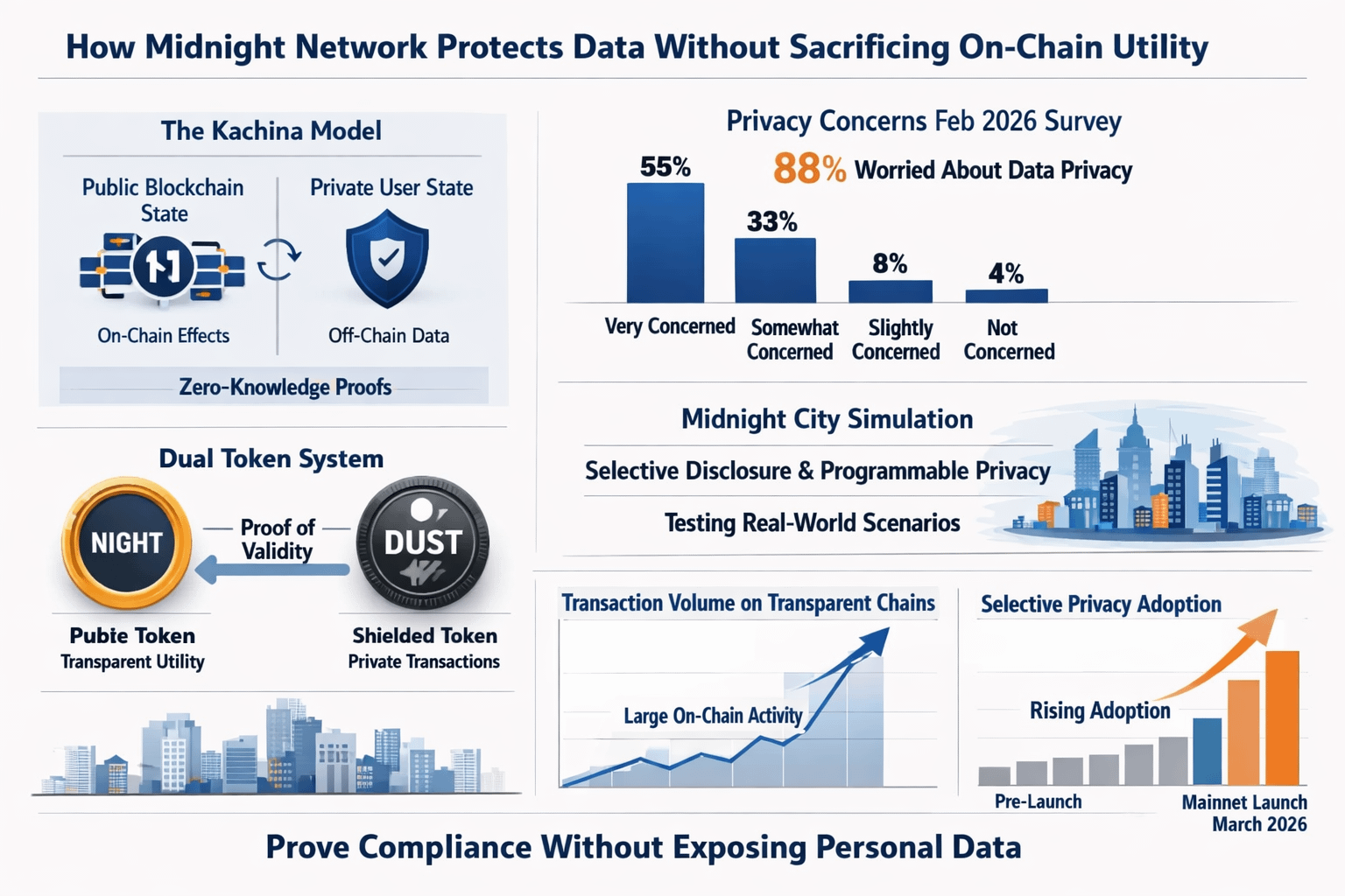 What ties it all together for me is the broader mood around privacy itself. Midnight’s February 2026 survey says nearly 90 percent of respondents are concerned about the privacy of their data and frames that concern against a web3 landscape where large transaction volumes still move across transparent rails. That helps explain why Midnight is landing differently now. People are no longer treating privacy as an abstract principle that sounds nice in theory. They are starting to feel the cost of exposure much more directly across payments identity and digital participation. Midnight’s real test will come after launch when elegant architecture runs into messy real-world usage but the central idea already feels important to me. I should be able to prove that I followed the rules without handing over my entire digital life just to participate on-chain.